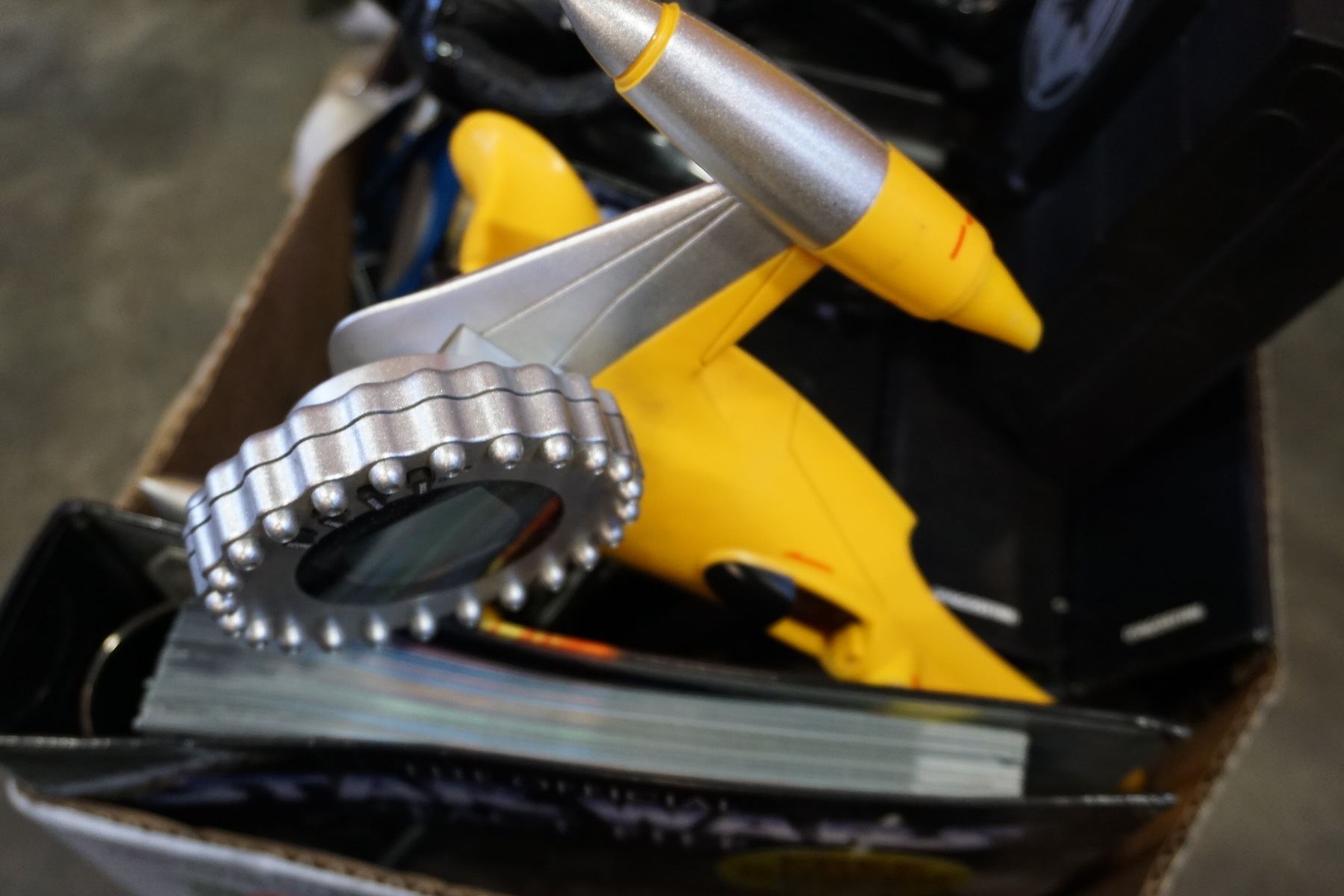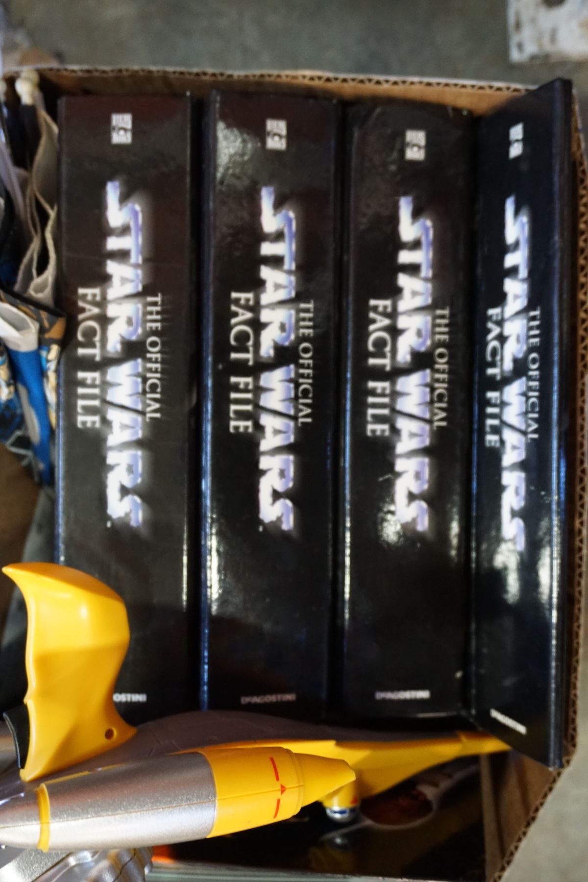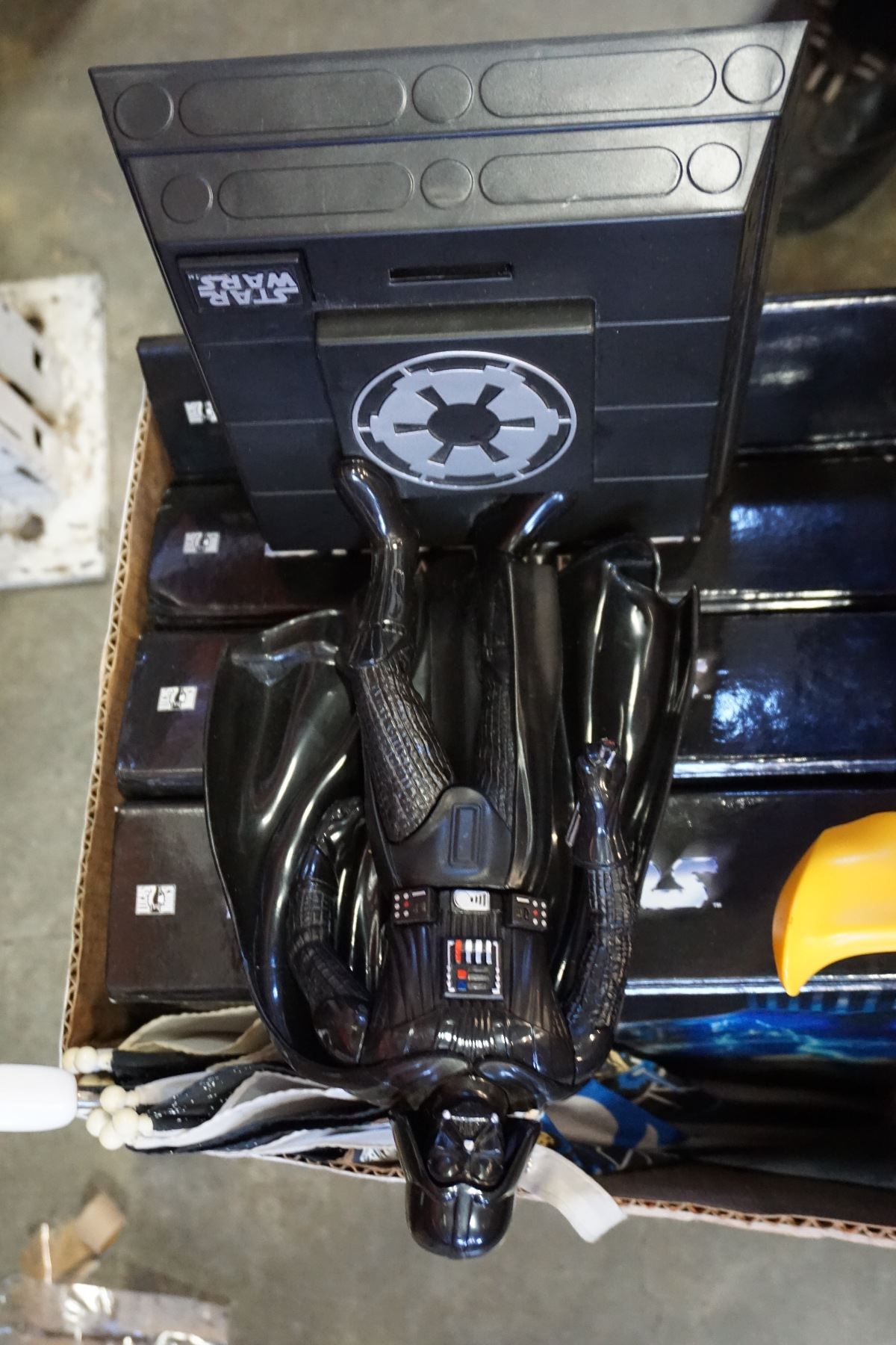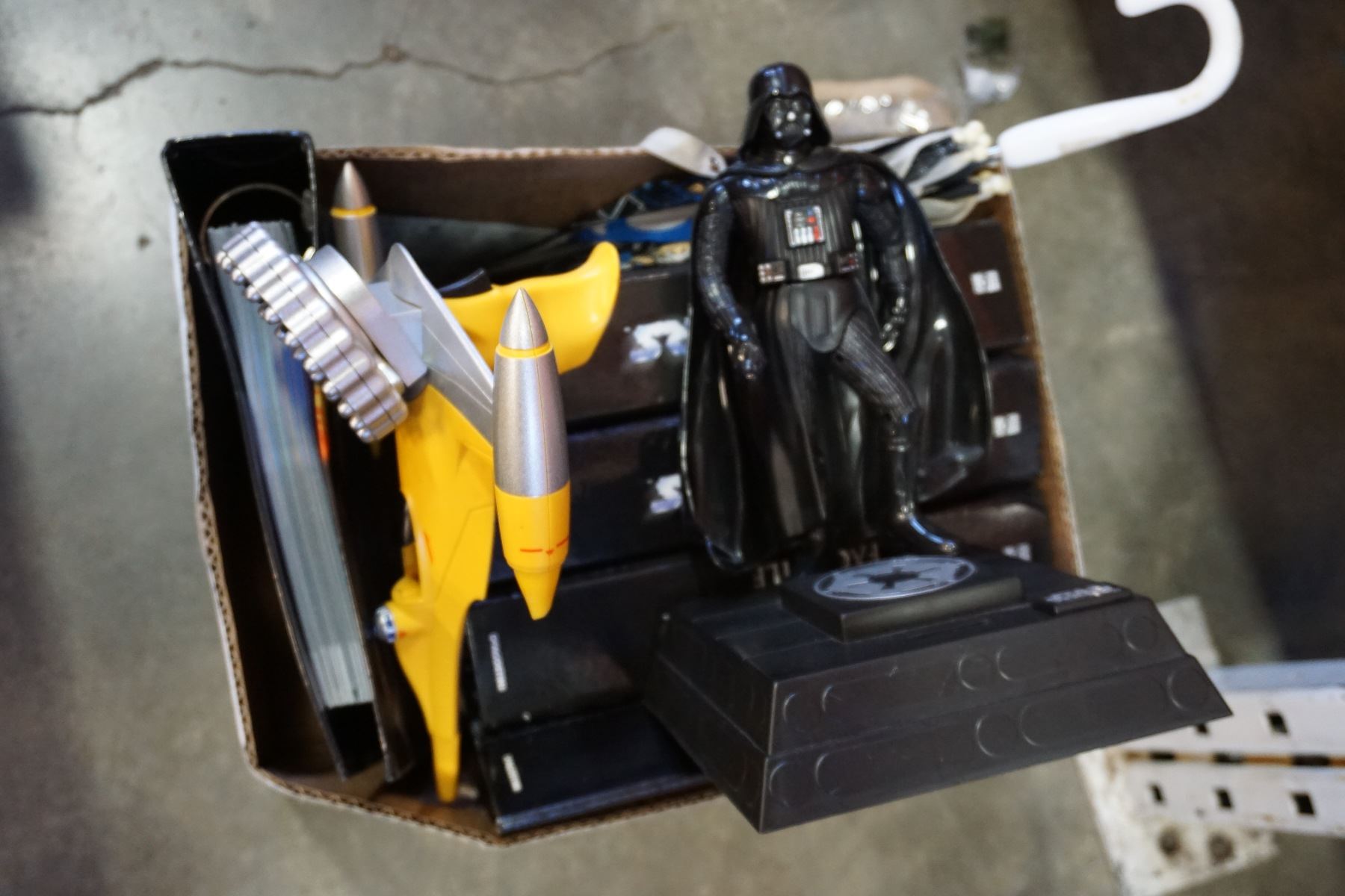BOX OF STARWARS COLLECTIBLES AND UMBRELLA