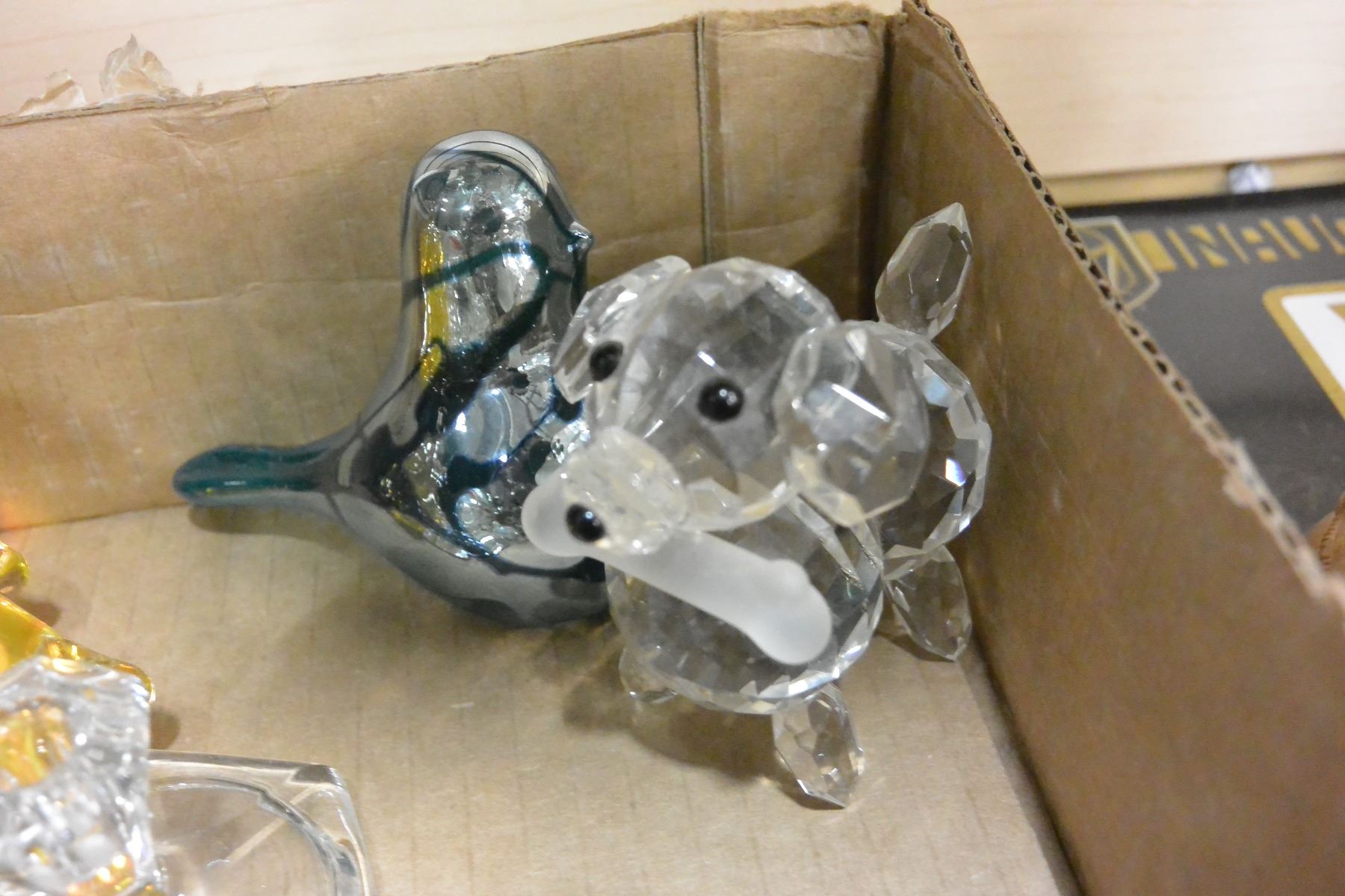 BOX OF SWATSKY CRYSTAL AND ART GLASS FIGURES