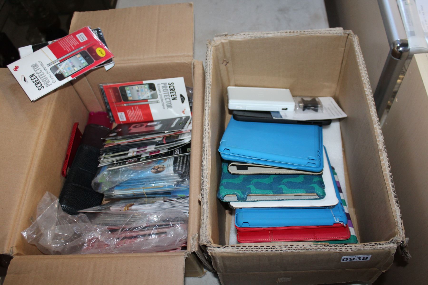BOX OF TABLET CASES AND SCREEN PROTECTORS