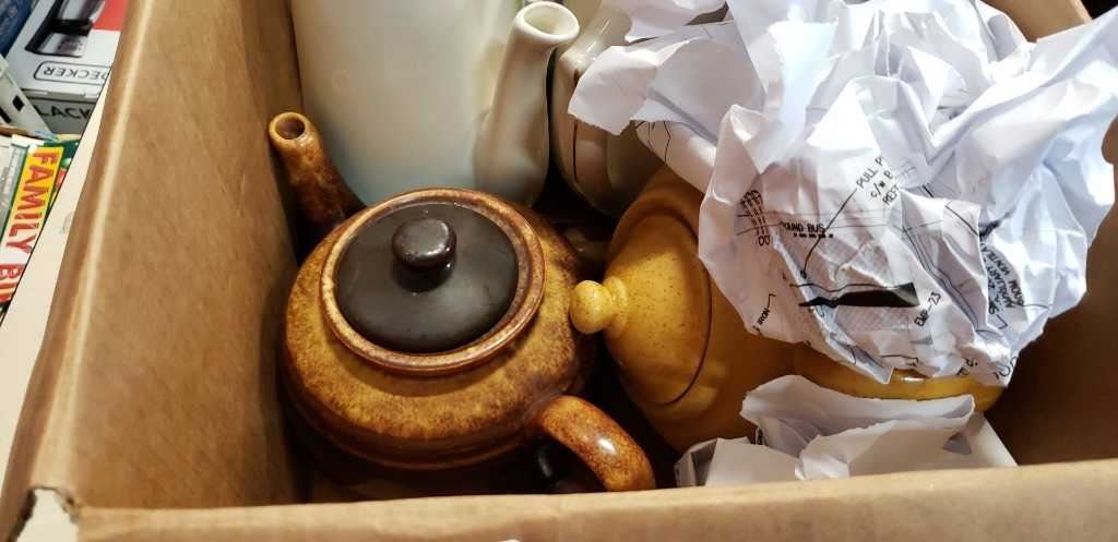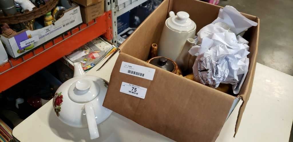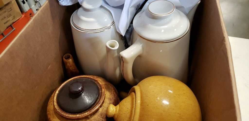 BOX OF TEAPOTS