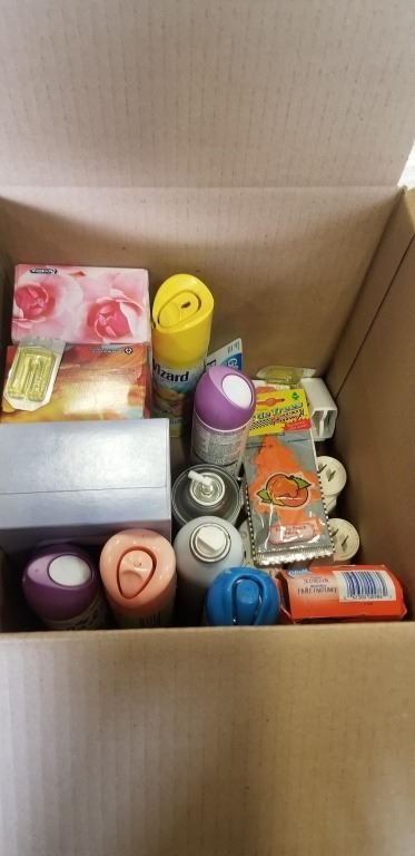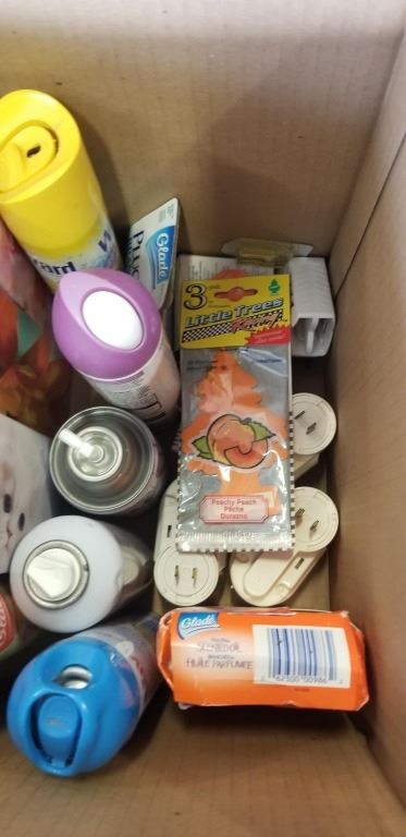 BOX OF TISSUE PAPER, AEROSOL AIR FRESHENER AND PLUGIN AIR FRESHENER