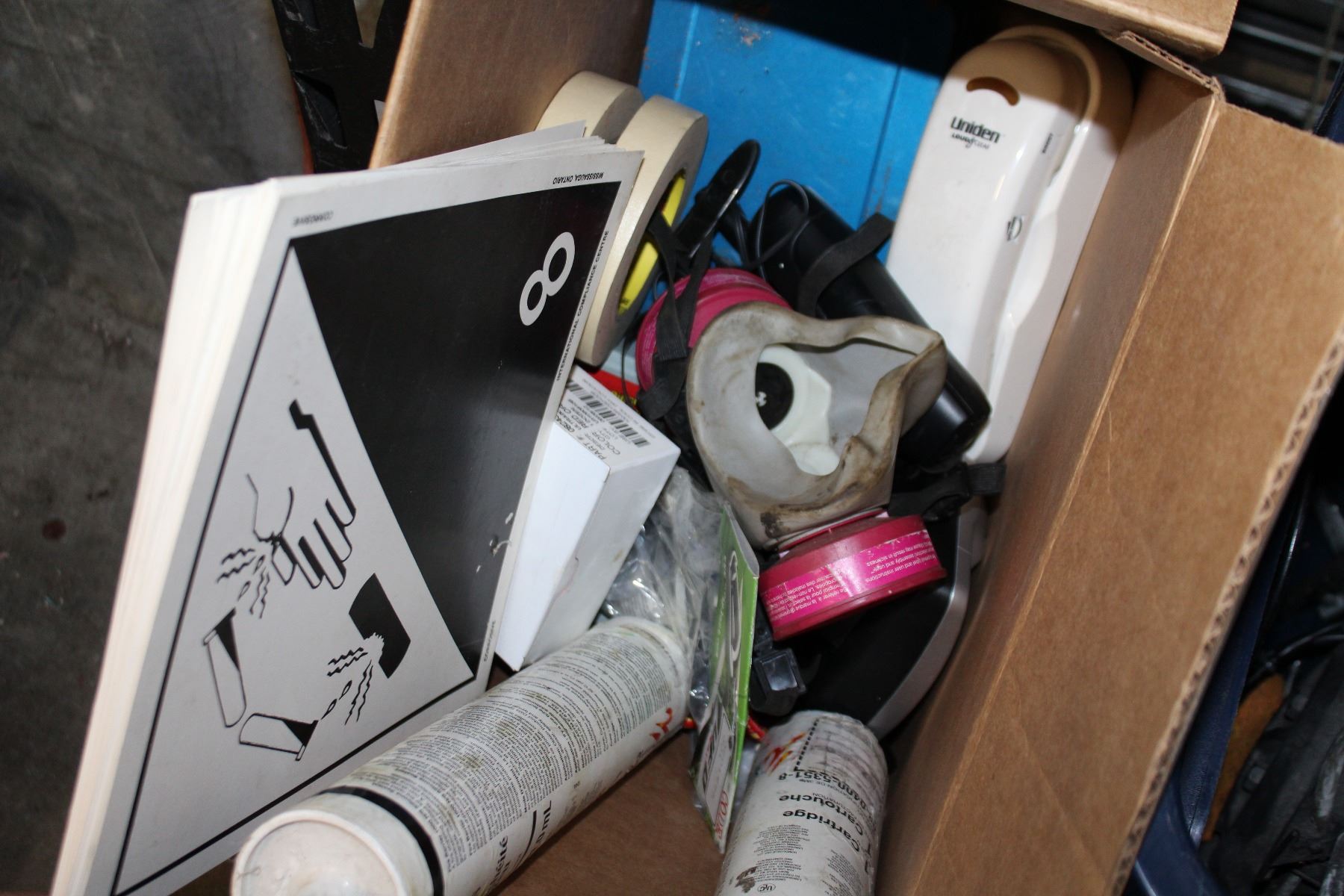 BOX OF TOOLS AND FIRE BARRIERE SILICONE AND HAND SANITIZER