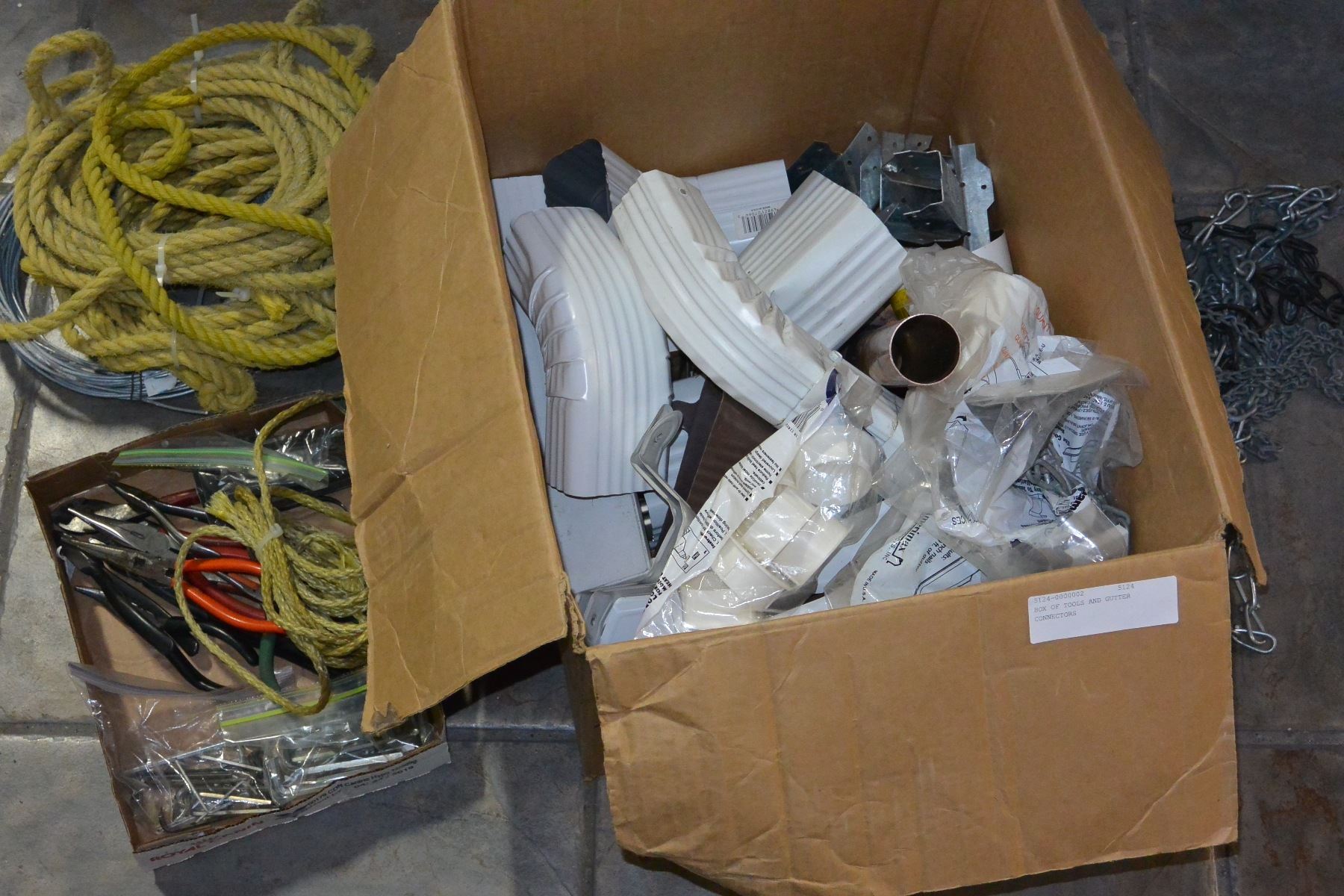 BOX OF TOOLS AND GUTTER CONNECTORS