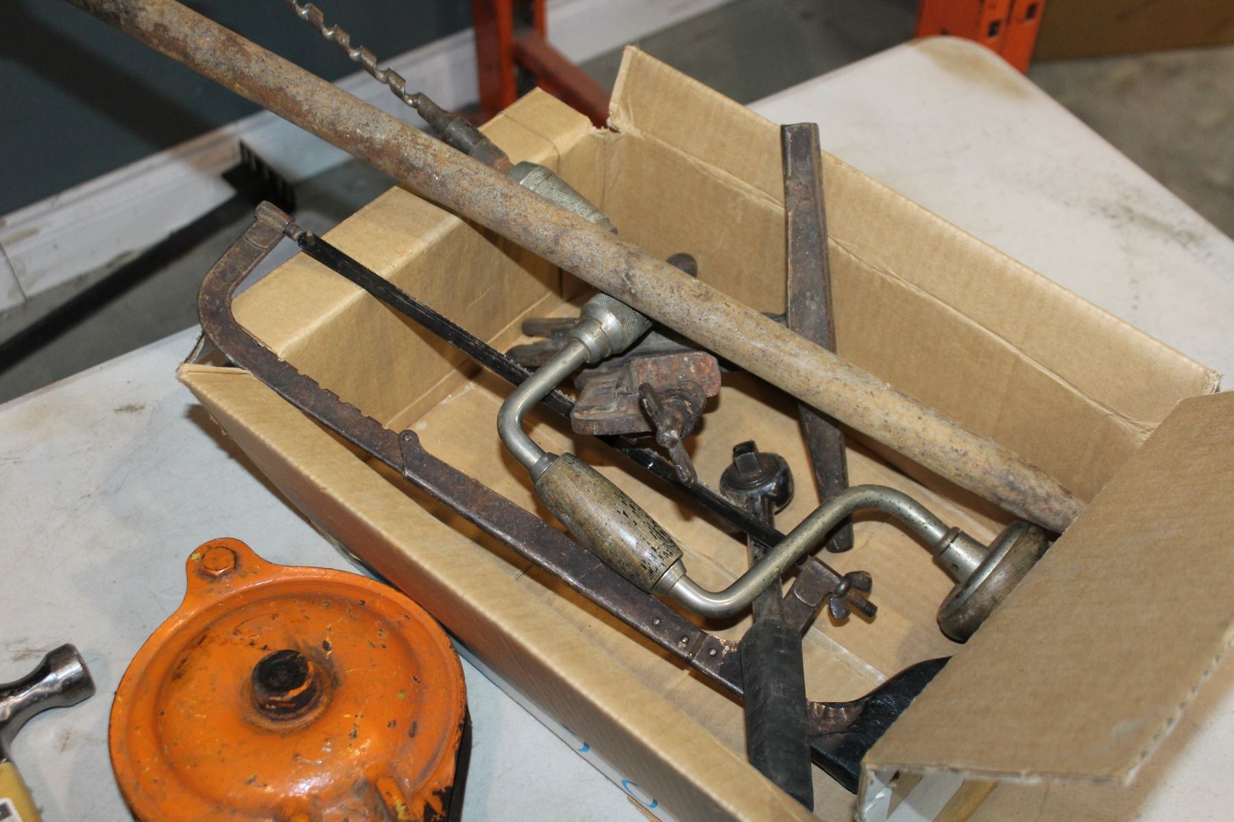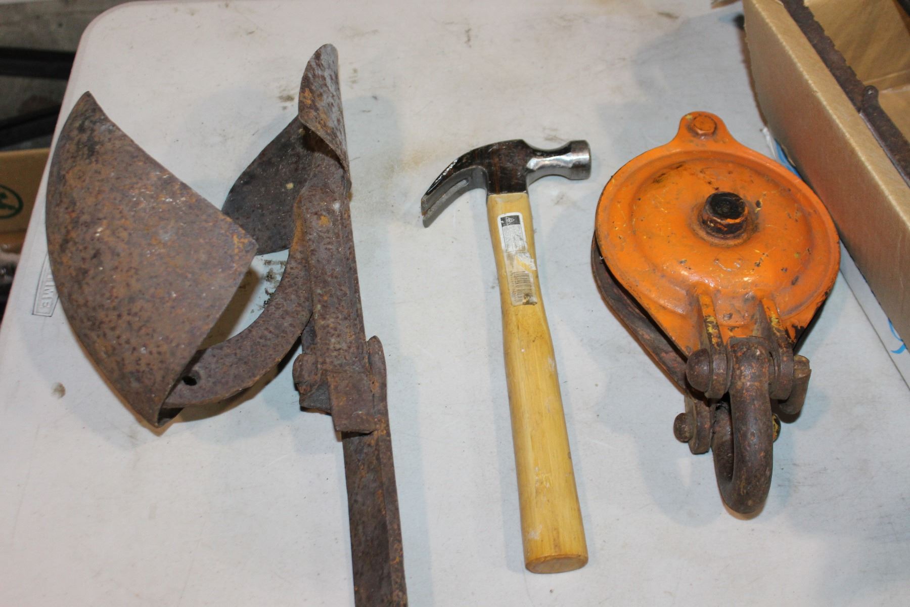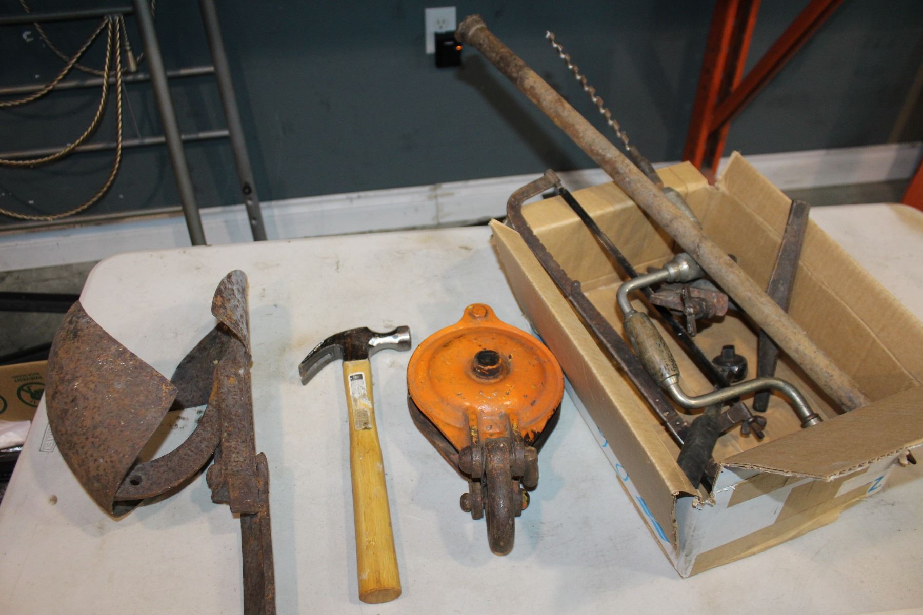 BOX OF TOOLS AND PULLEY