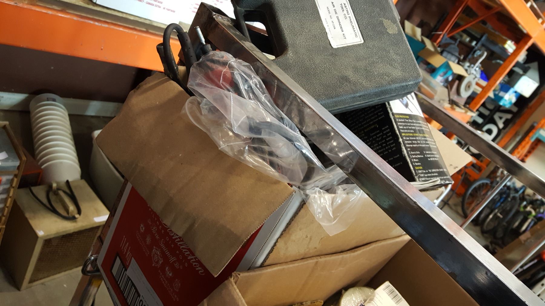 BOX OF TOOLS AND SAWBLADES AND ROTARY TOOLS
