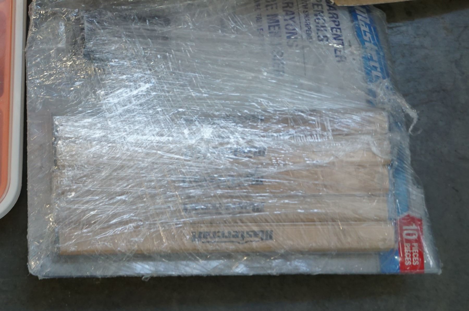 BOX OF TOOLS AND SHOP SUPPLIES IN BANKERS BOX AND WHITE BOX OF TOOLS