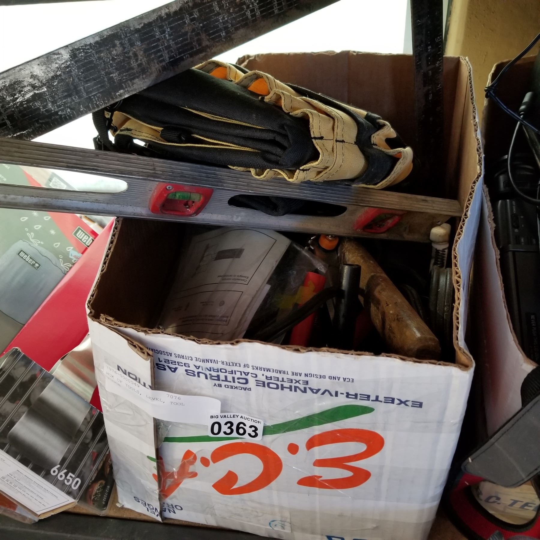 BOX OF TOOLS, LEVEL, TOOL POUCH