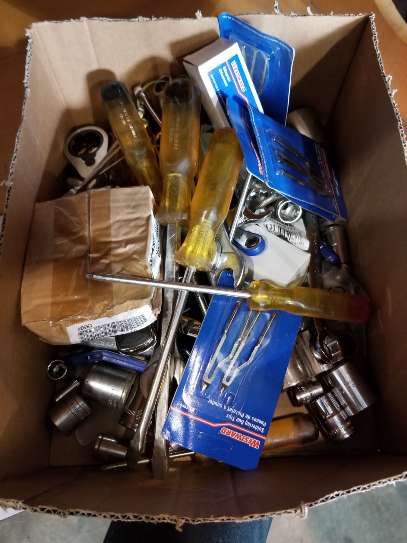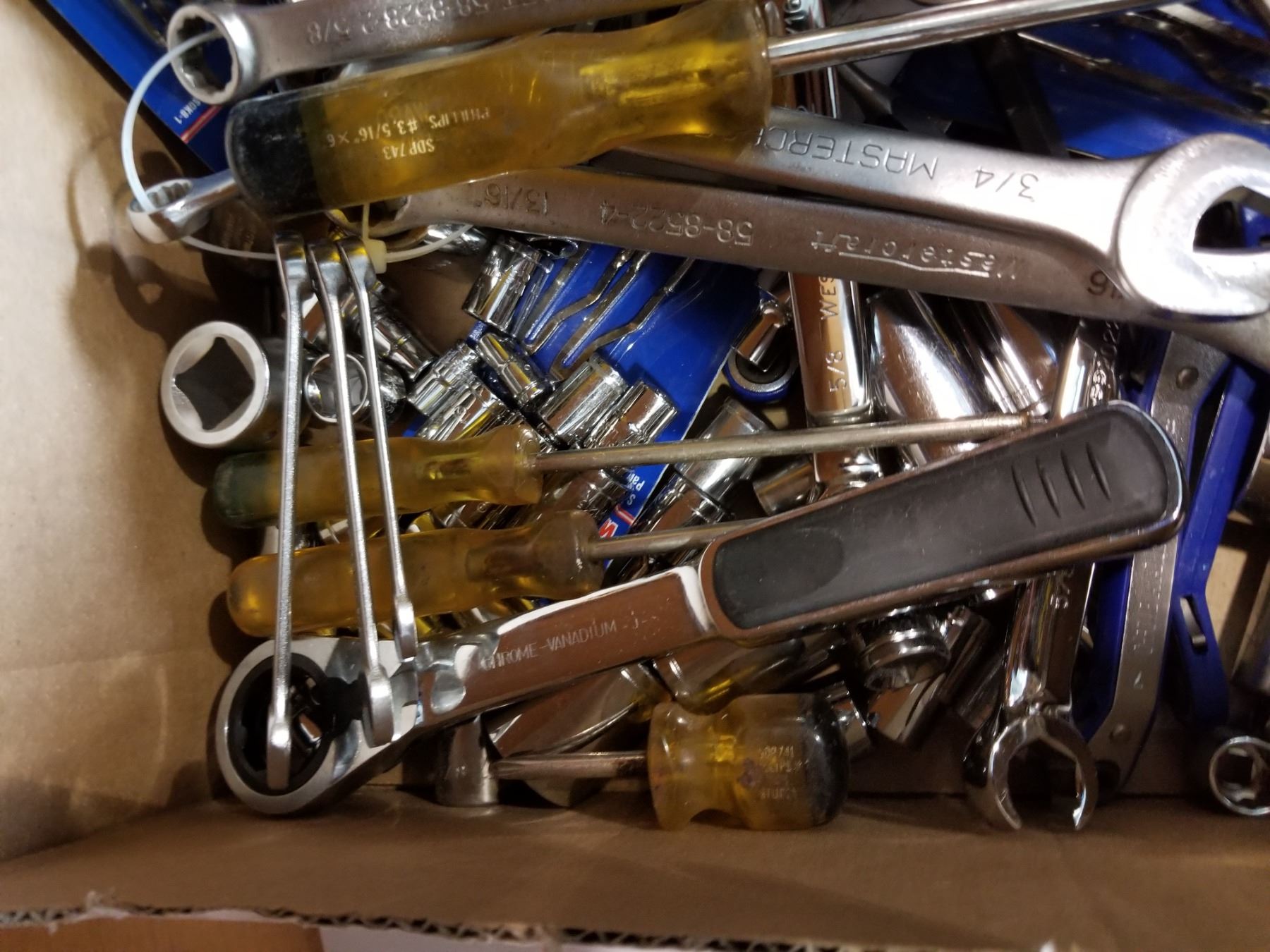 BOX OF TOOLS, MASTERCRAFT WRENCHES WESTWARD TOOLS