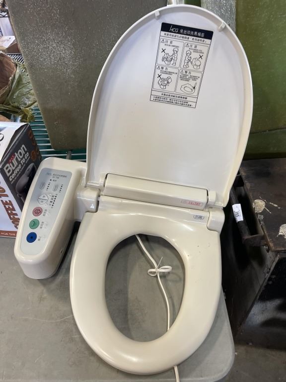 BOX OF TOOLS WITH WORLD GLOBE, COFFEE TO GO MAKER AND BIDET SEAT