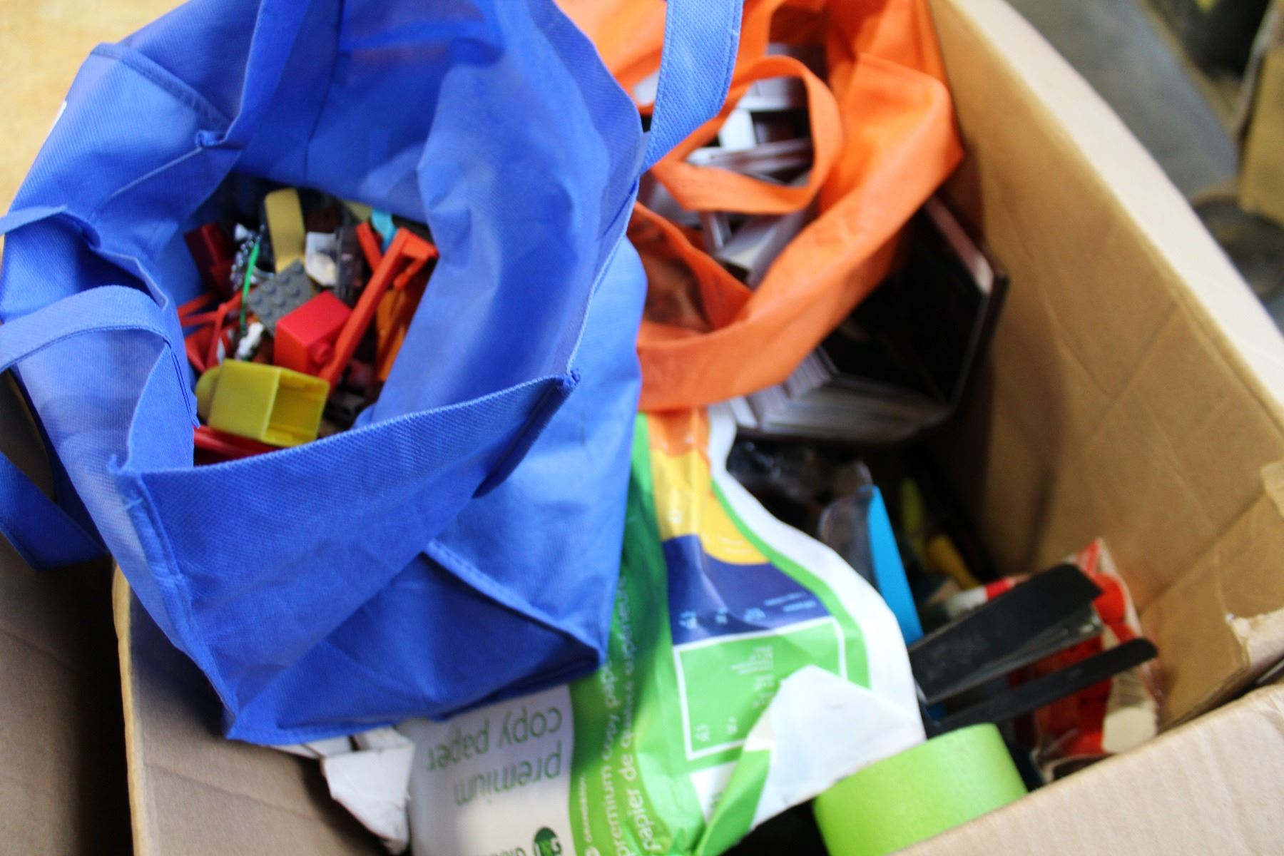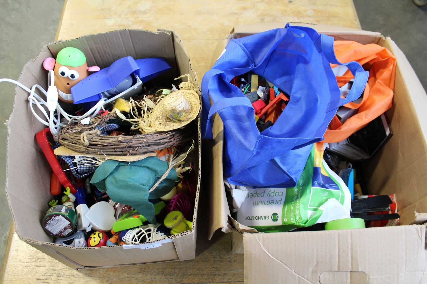 BOX OF TOYS AND BOX OF OFFICE SUPPLIES