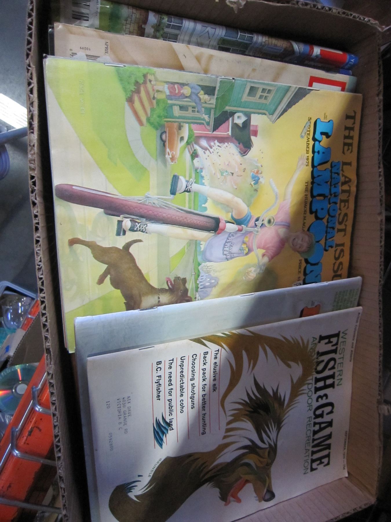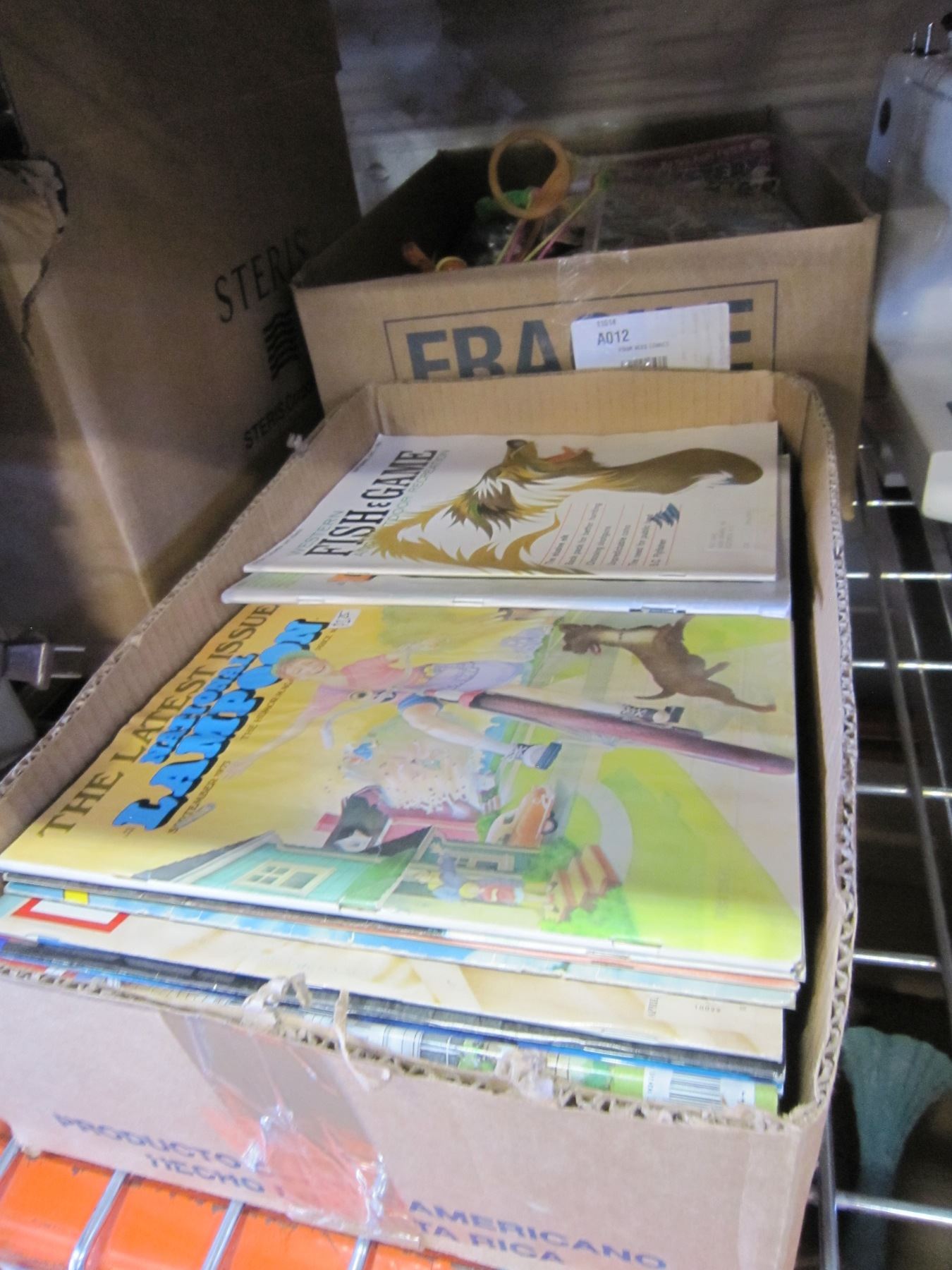 BOX OF TOYS, COMICS, AND BOX OF MAGAZINES