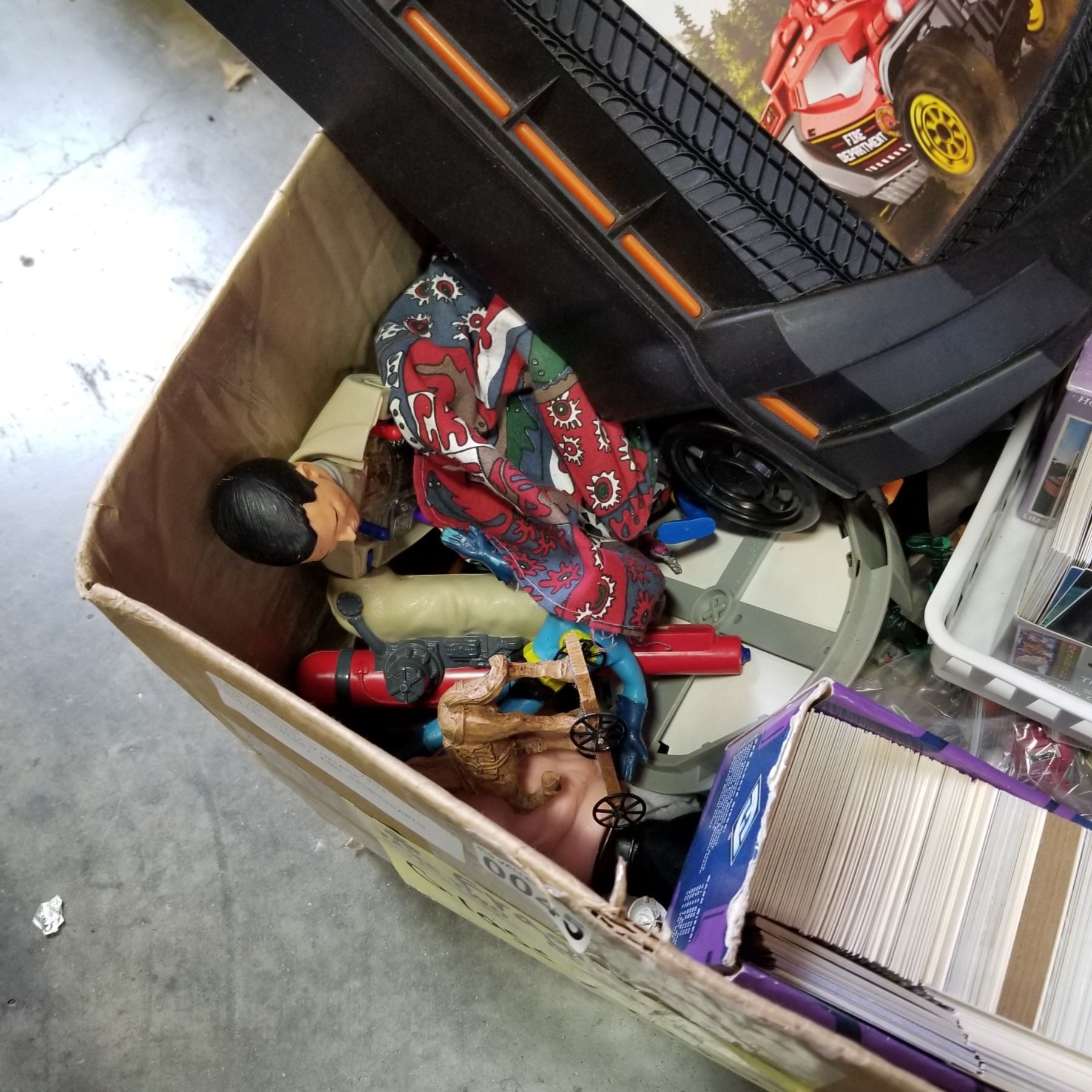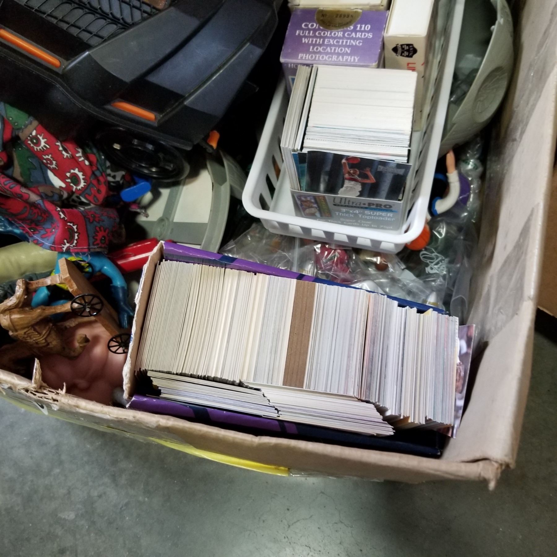 BOX OF TOYS, VINTAGE COLLECTIBLES, AND SPORTSCARDS
