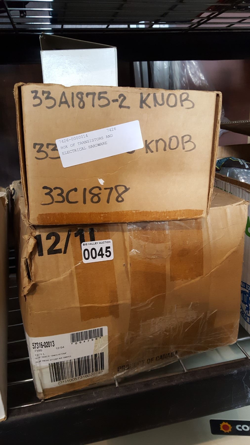 BOX OF TRANSISTORS AND ELECTRICAL HARDWARE