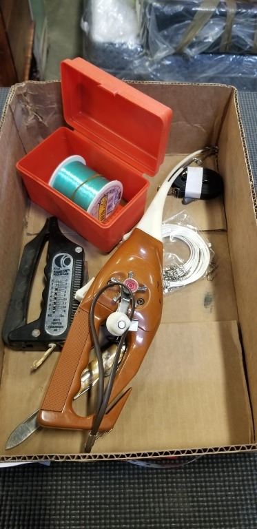 BOX OF VARIOUS FISHINGS ITEMS AND POCKET KNIFE