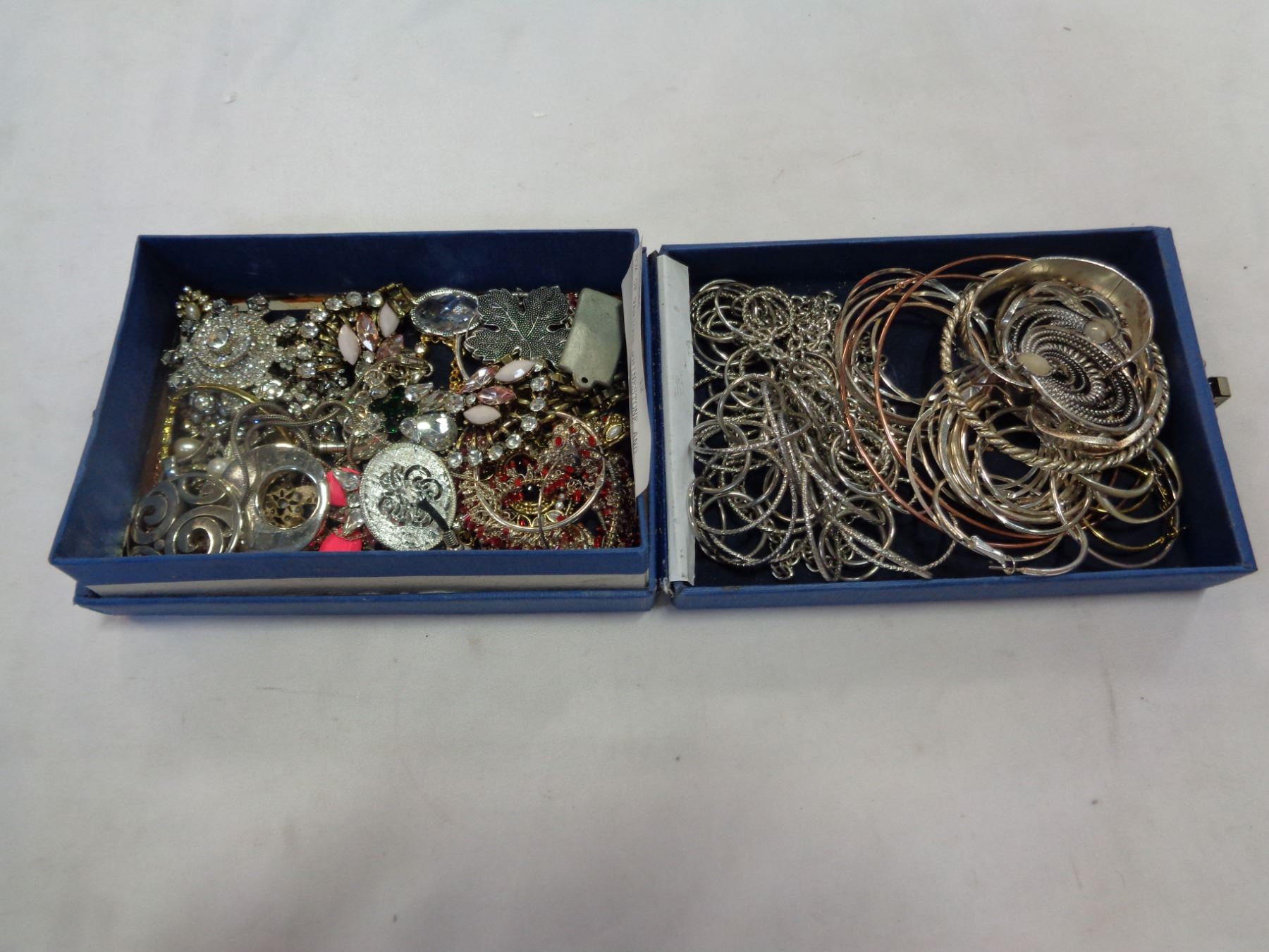 BOX OF VARIOUS RHINESTONE AND SILVER TONE ESTATE JEWELLERY