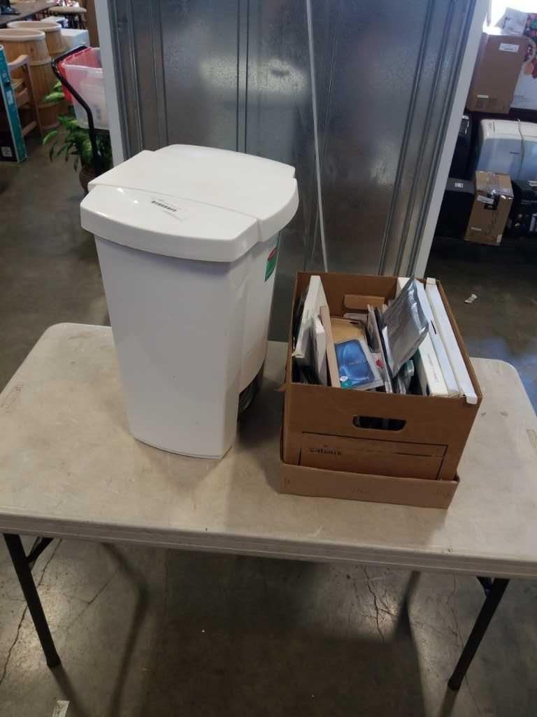 BOX OF VARIOUS SMARTPHONE CASES AND WASTE BIN