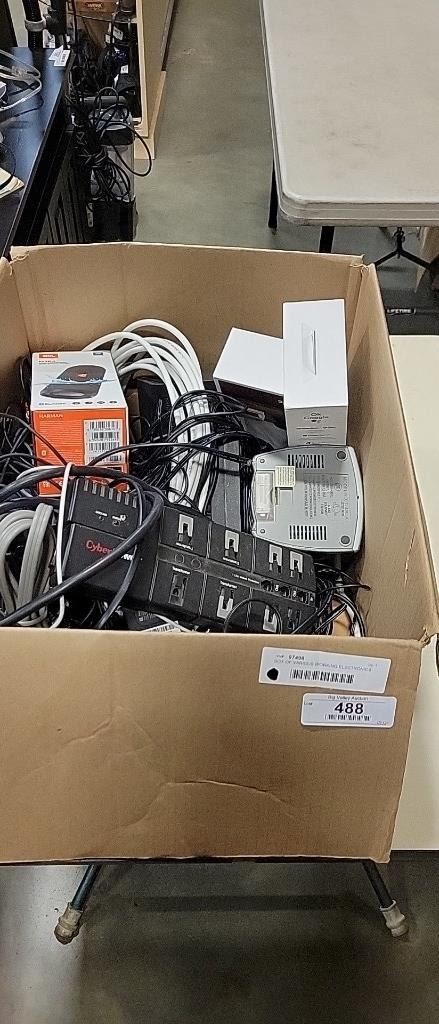 BOX OF VARIOUS WORKING ELECTRONICS AND CORDS