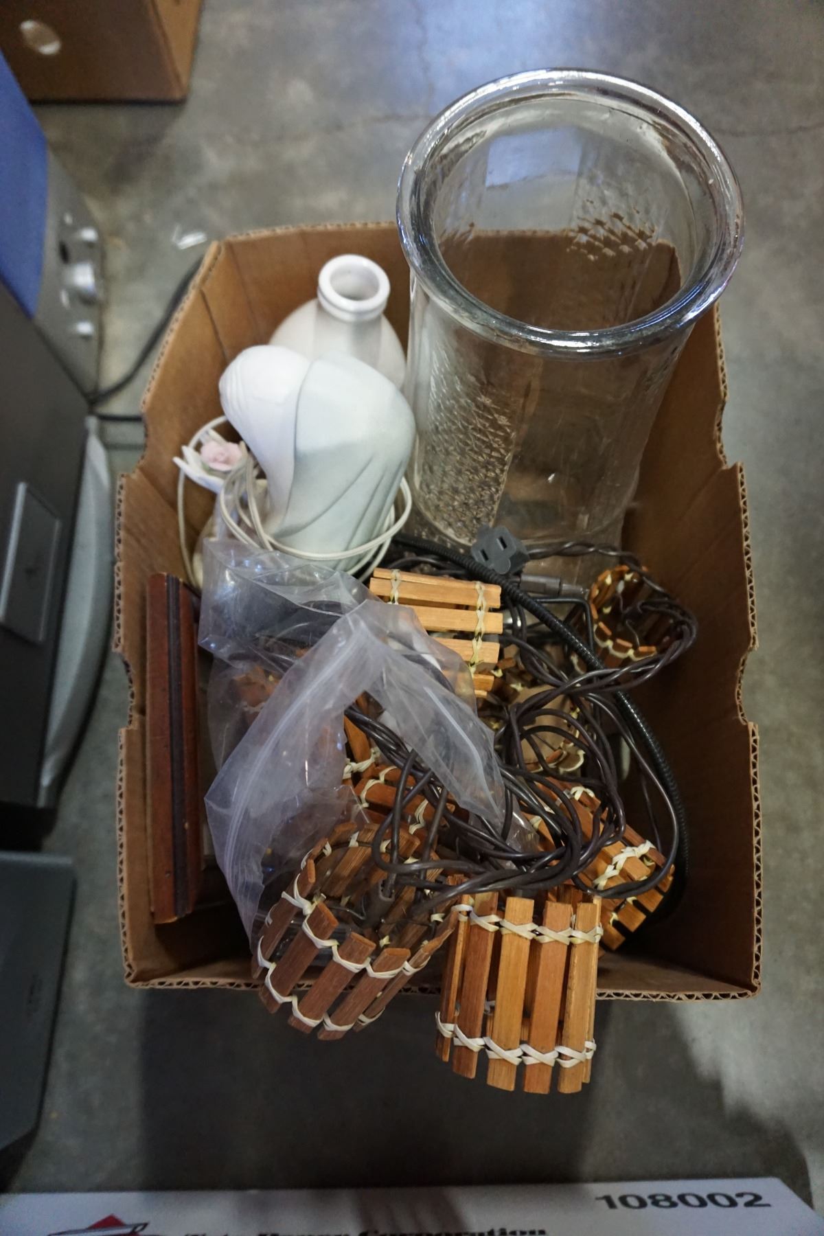 BOX OF VASES, LIGHTS AND ESTATE ITEMS