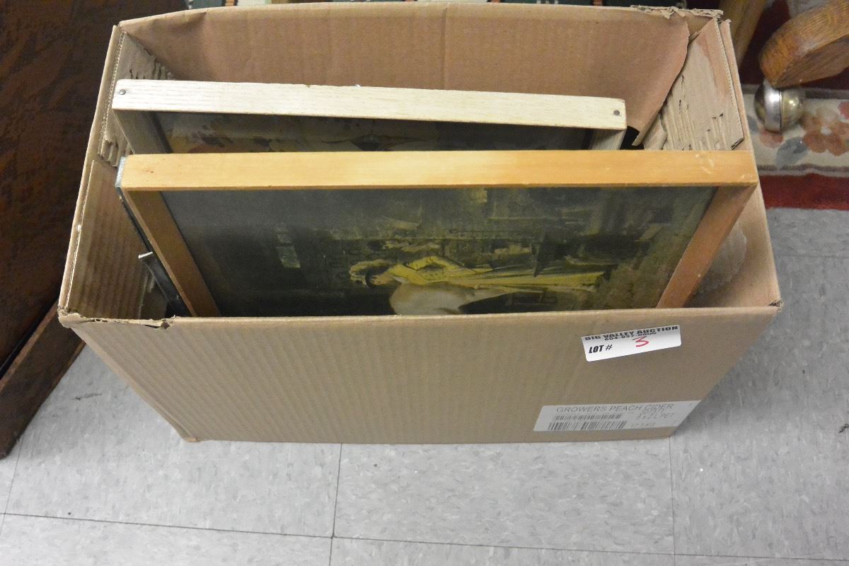 BOX OF VINTAGE ASSORTED PICTURES AND FRAMES