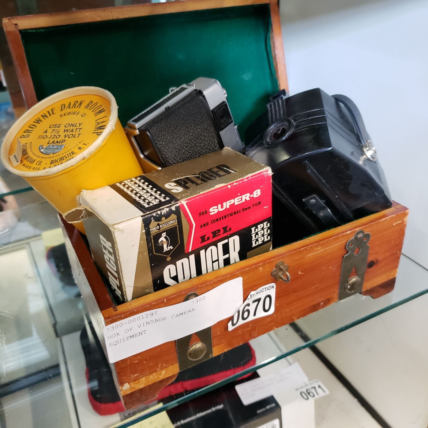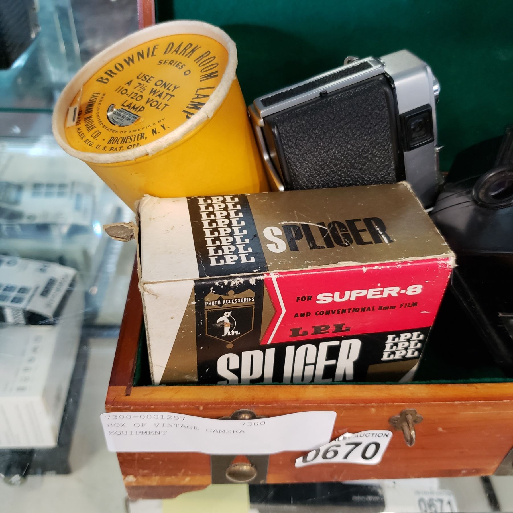 BOX OF VINTAGE CAMERA EQUIPMENT