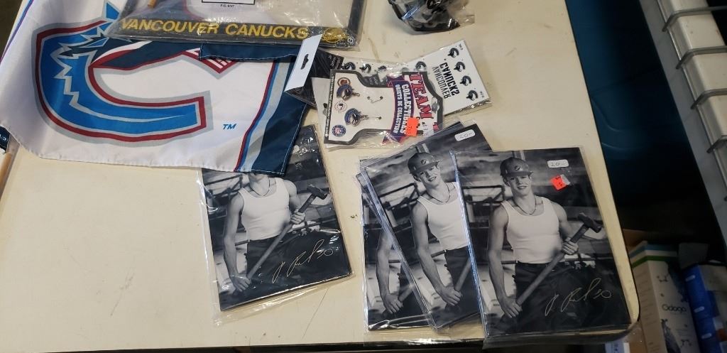 BOX OF VINTAGE CANUCKS ITEMS INCLUDING 5 TEAM SETS PHOTOS