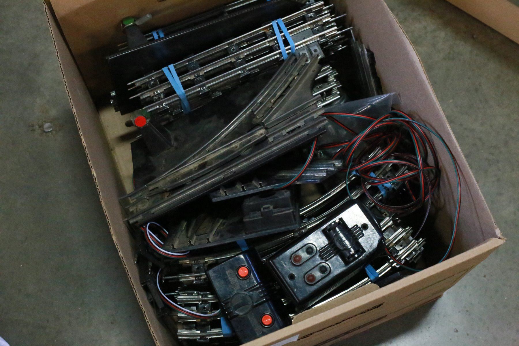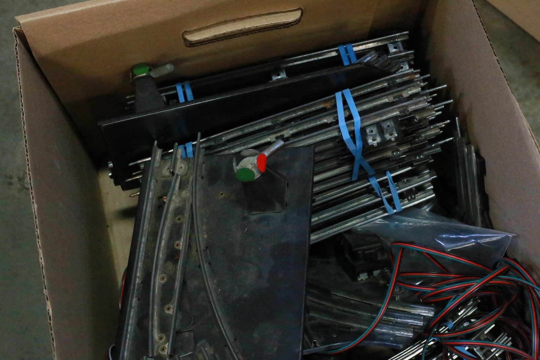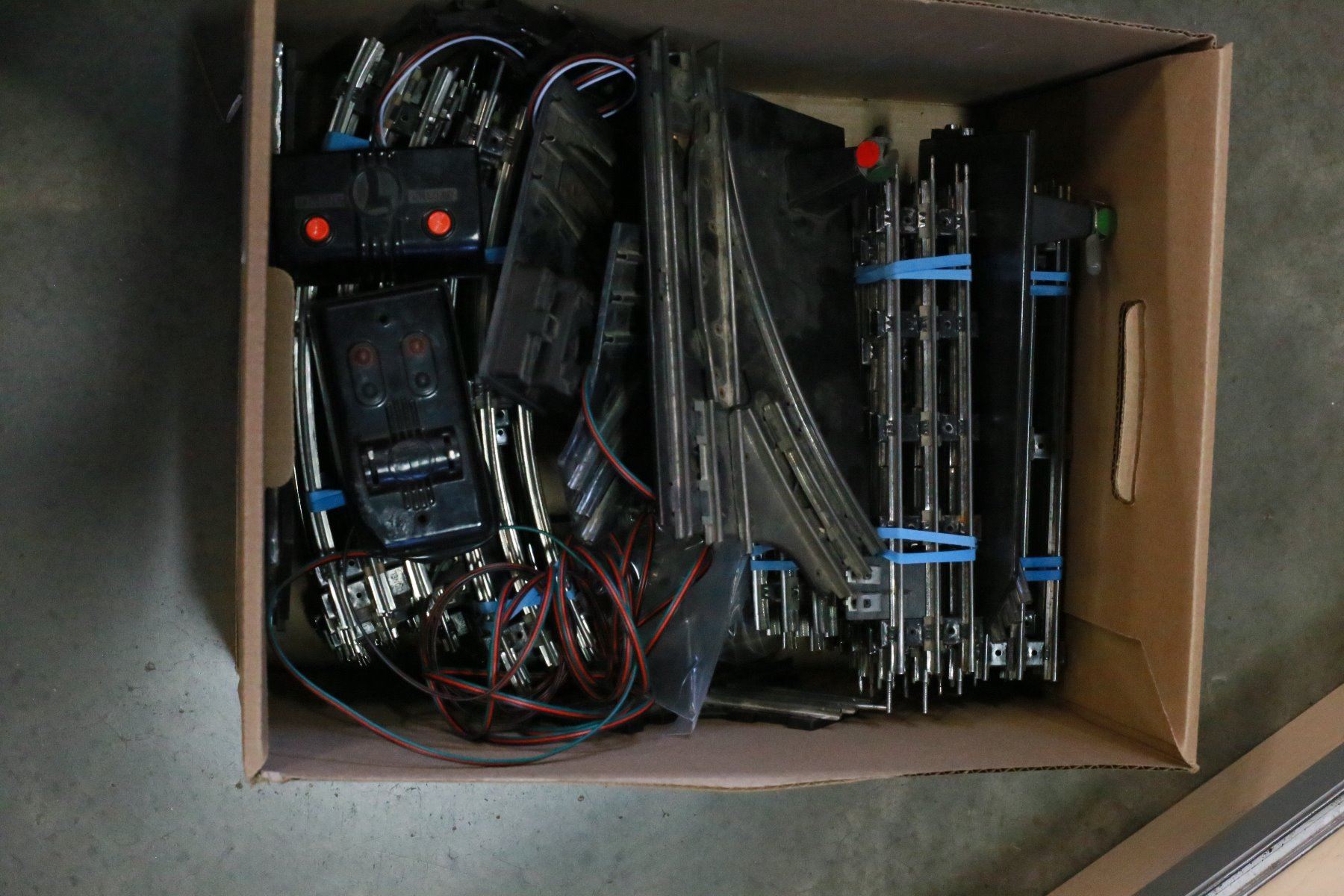 BOX OF VINTAGE LIONEL MODEL TRAIN TRACKS AND CONTROLS O SCALE