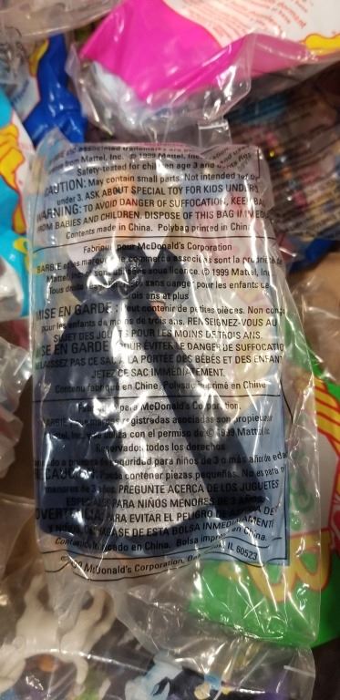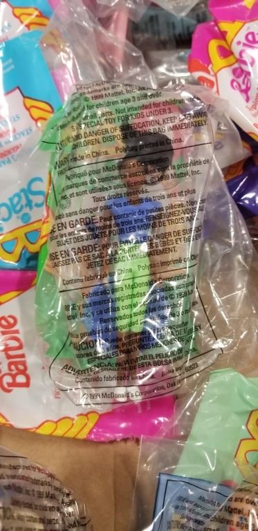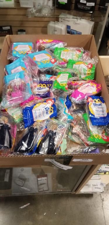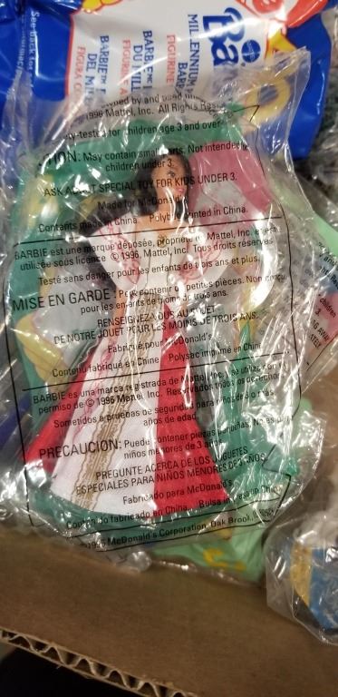 BOX OF VINTAGE MOSTLY SEALED COLLECTIBLE BARBIE MCDONALD'S TOYS