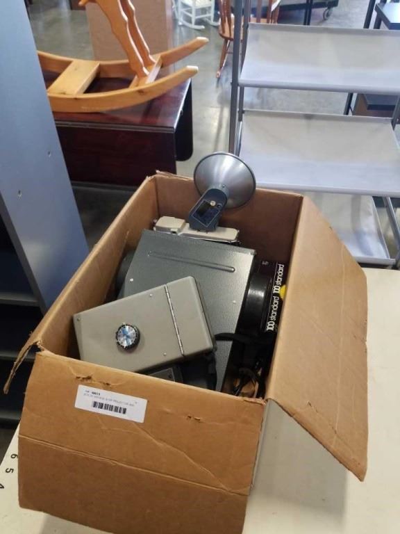 BOX OF VINTAGE SLIDE PROJECTOR AND CAMERAS