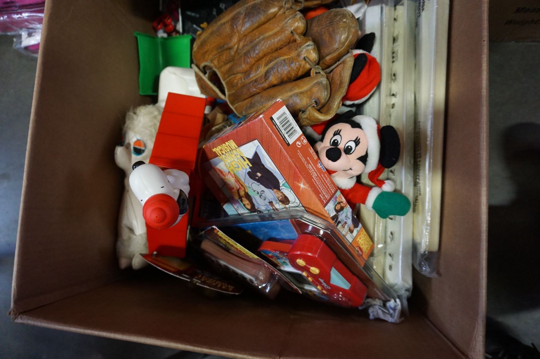 BOX OF VINTAGE TOYS INCLUDING SNOOPY AND SNOW CONE MAKER