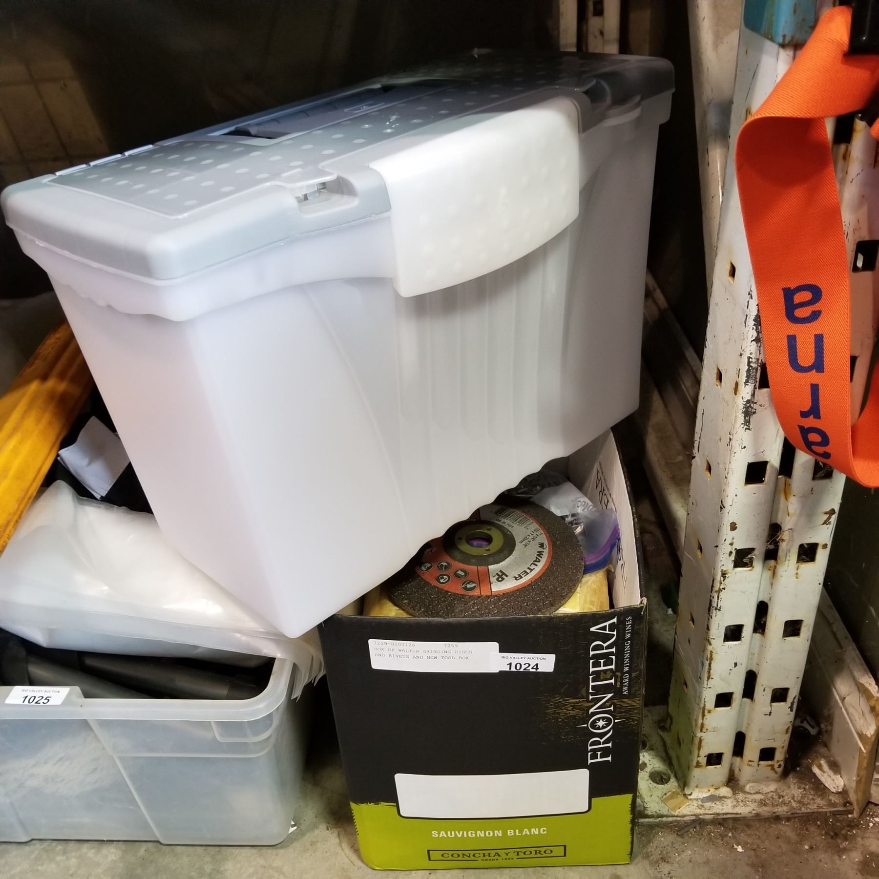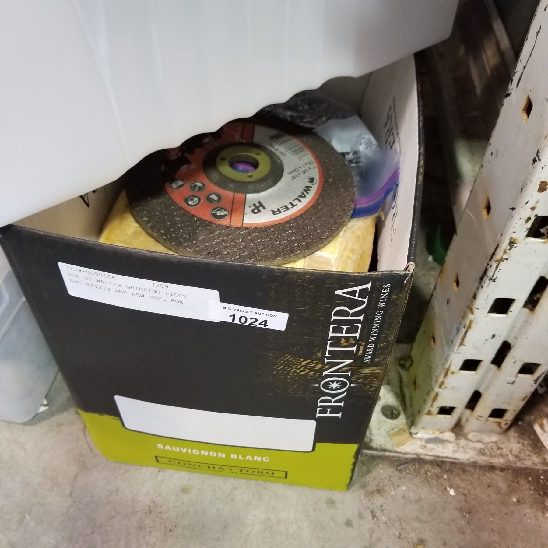 BOX OF WALTER GRINDING DISCS AND RIVETS AND NEW TOOL BOX