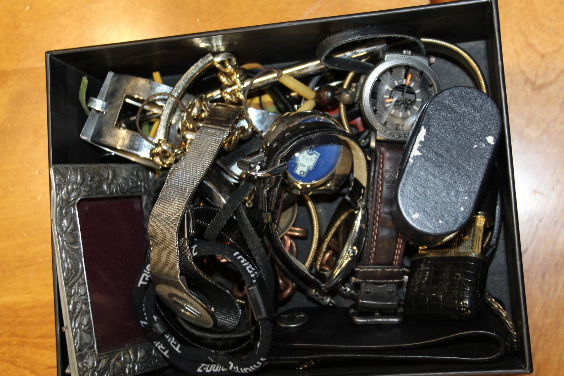 BOX OF WATCHES, WRIST BANDS, ETC.