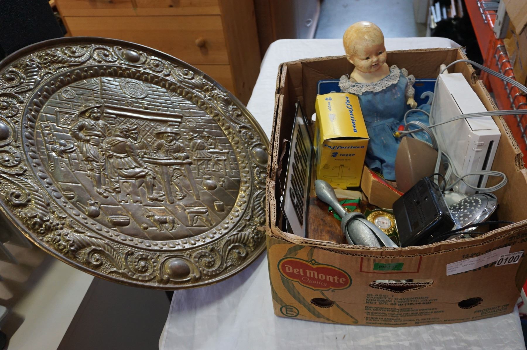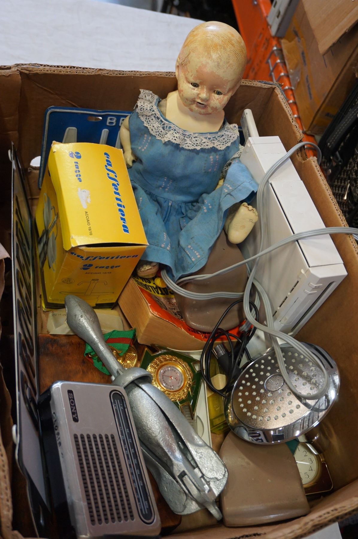 BOX OF WII CONSOLE, FOLDING ANCHOR, ANTIQUE DOLL, ESTATE GOODS