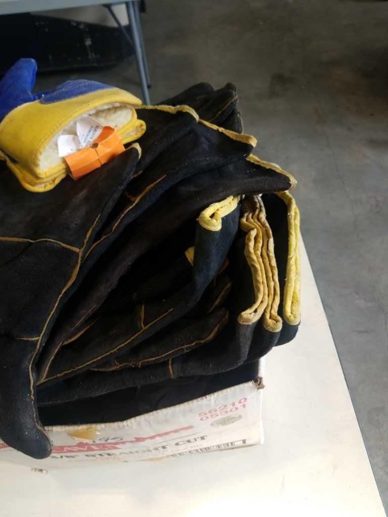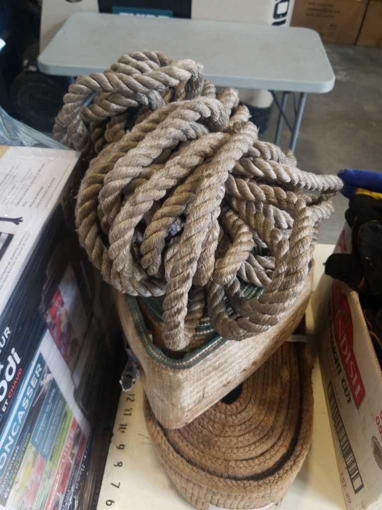 BOX OF WORK GLOVES, 2 LIFTING STRAPS AND ROPE
