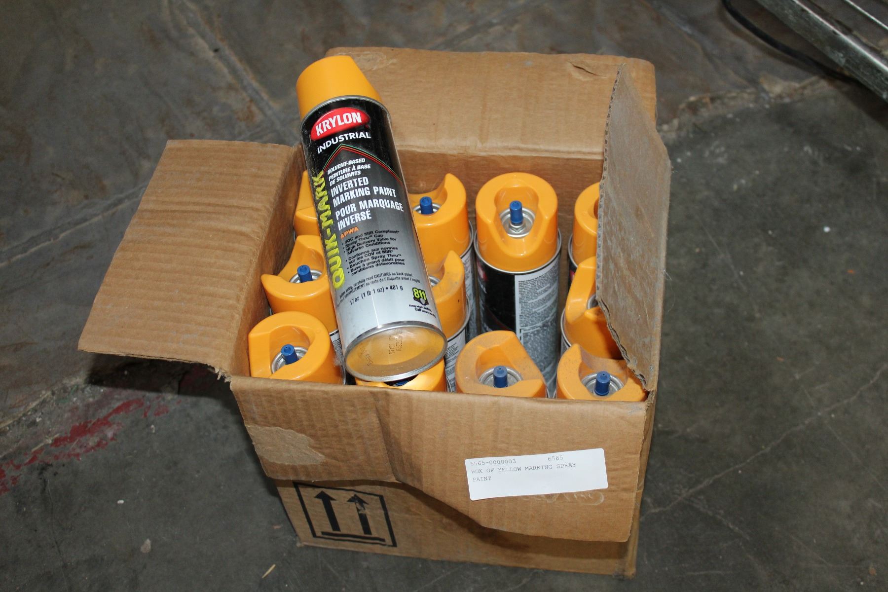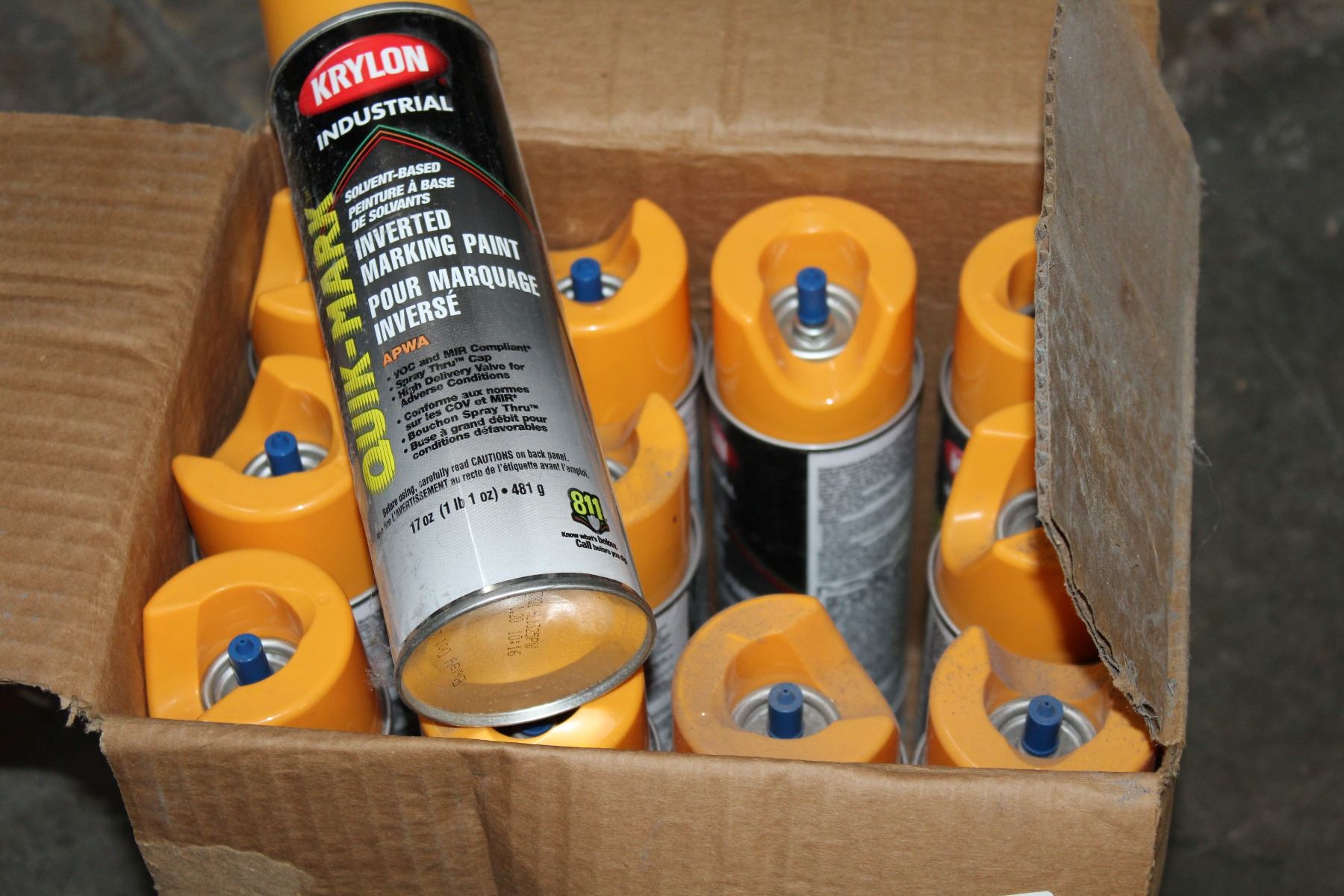BOX OF YELLOW MARKING SPRAY PAINT