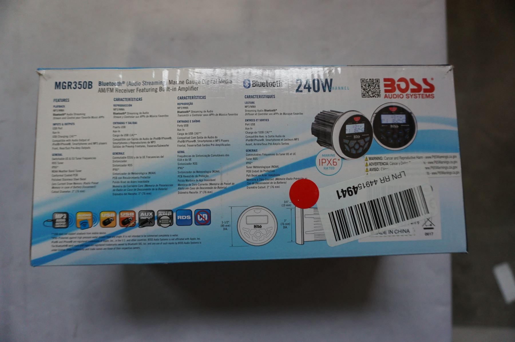 BOXX MGR350B BLUETOOTH MARINE GAUGE DIGITAL MEDIA AUDIO AM/FM RECEIVER