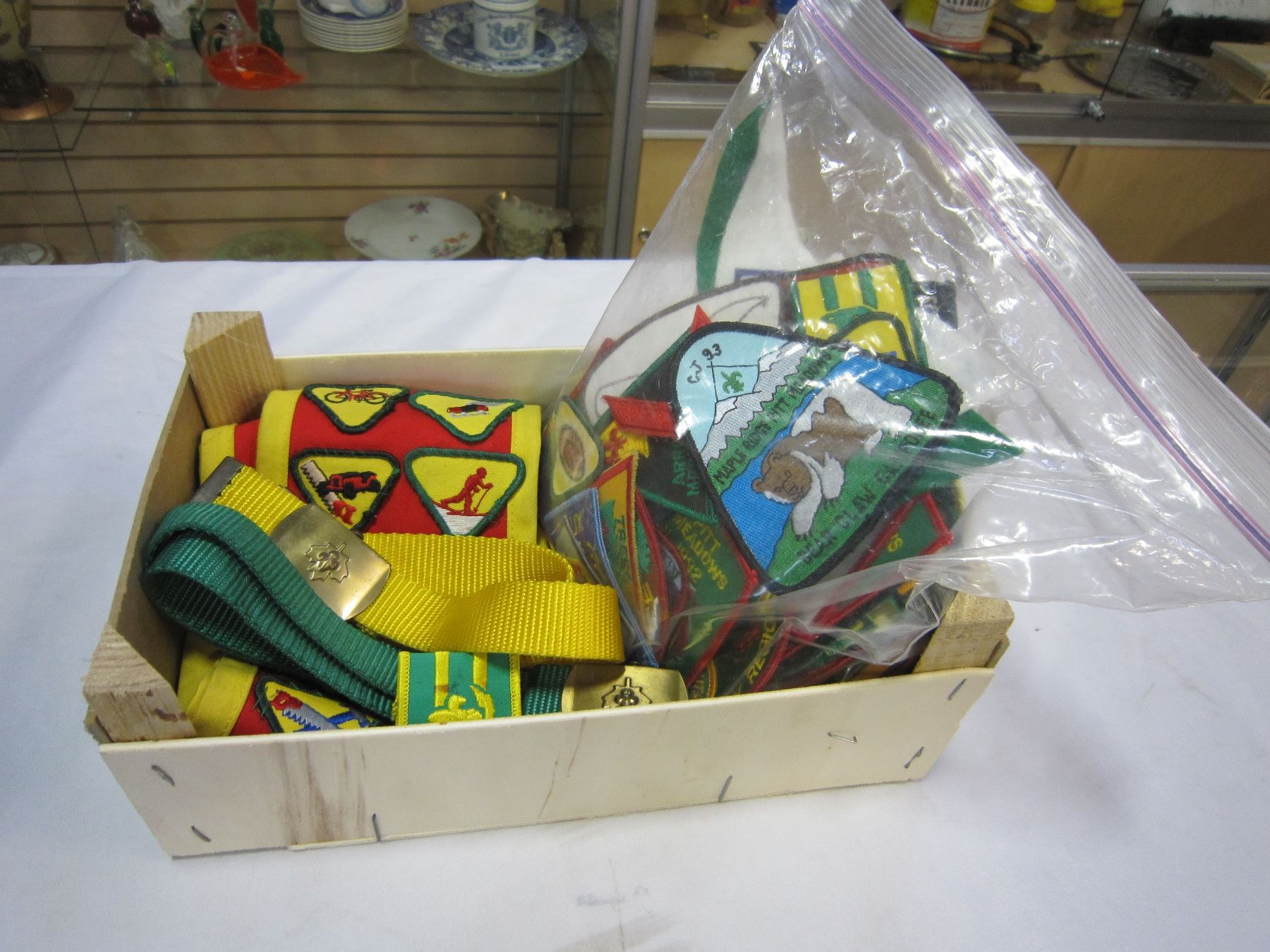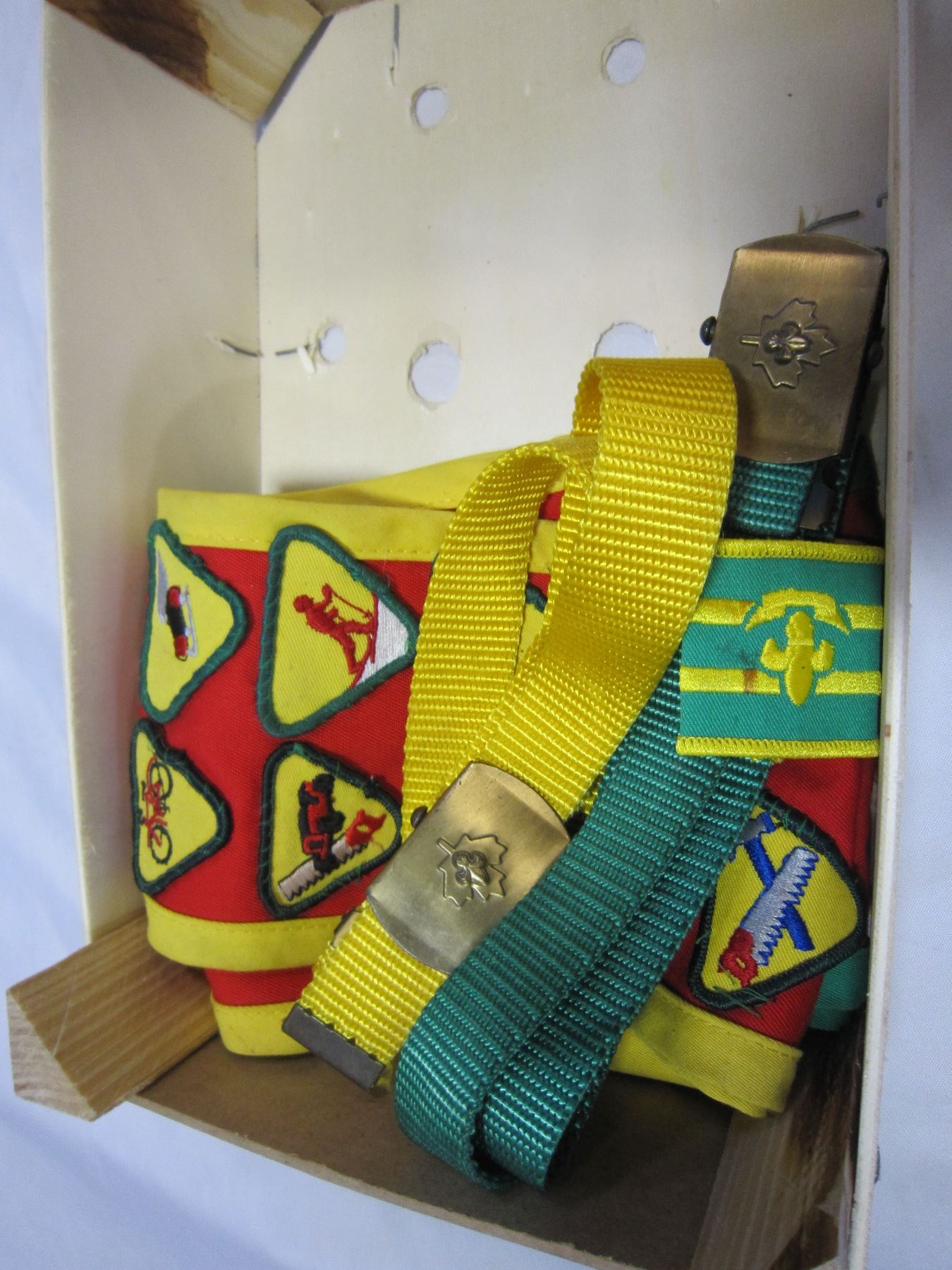 BOY SCOUT BADGES, 2 SASHES, AND BELTS