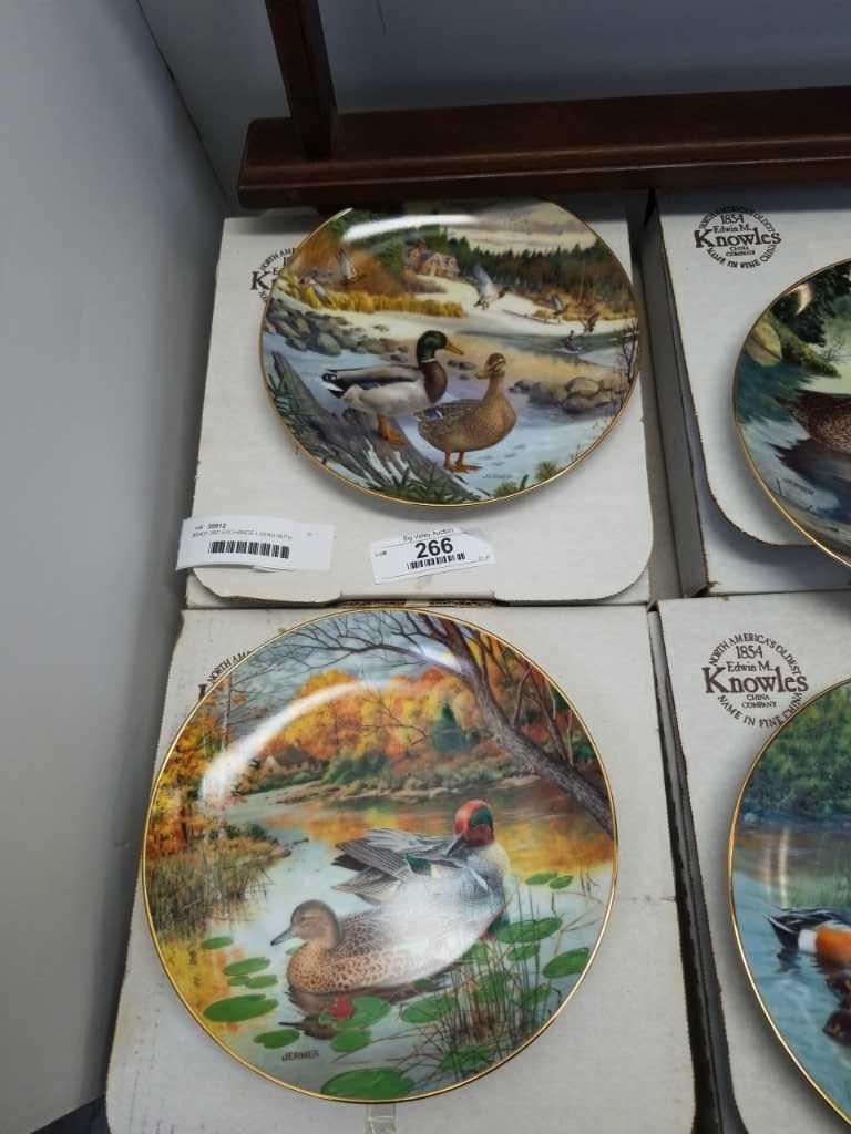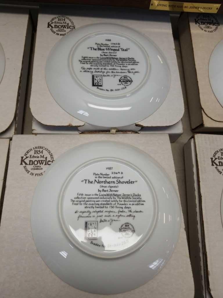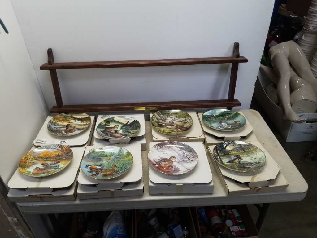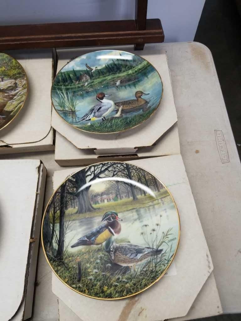BRADFORD EXCHANGE LIVING WITH NATURE: JERNERS DUCKS 8 COLLECTOR PLATE SET WITH DISPLAY SHELF