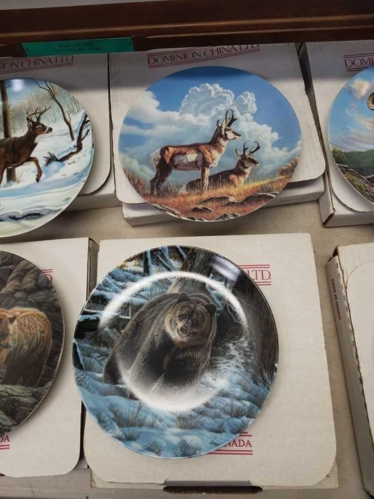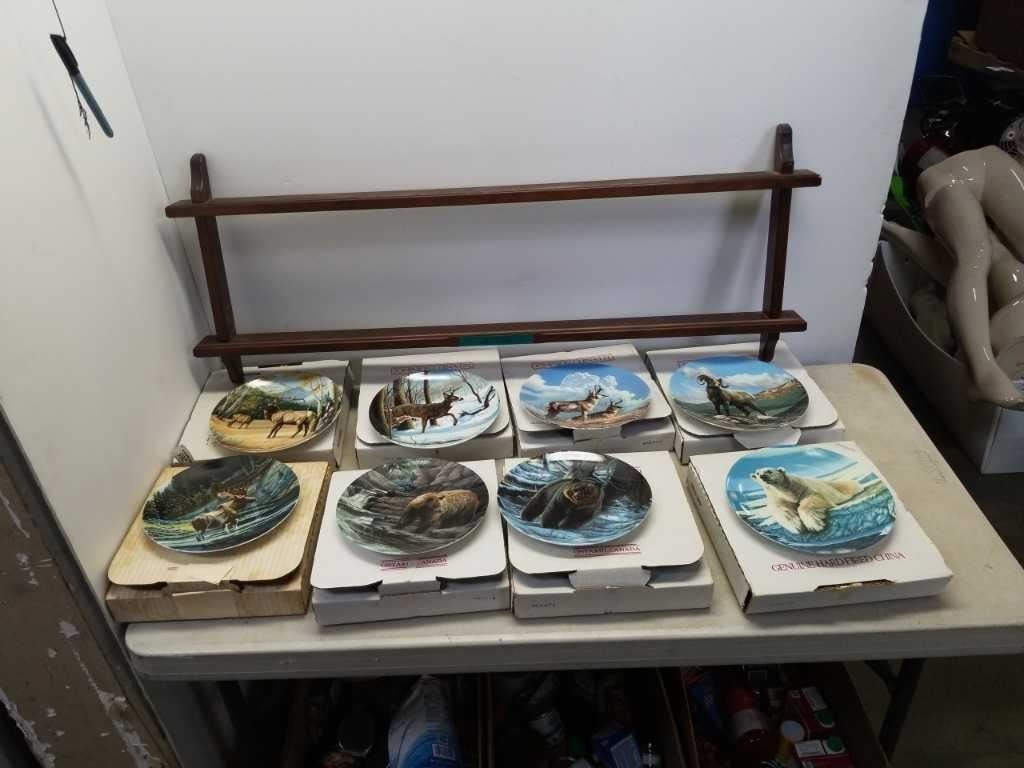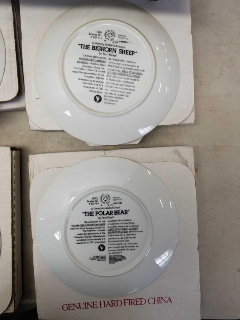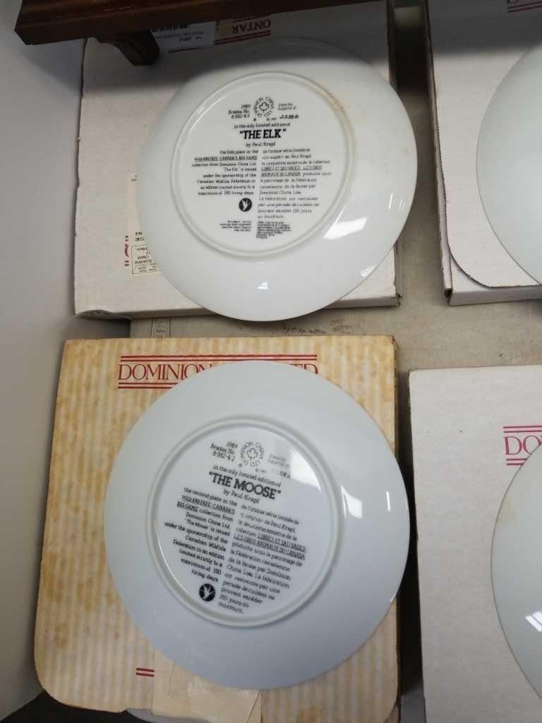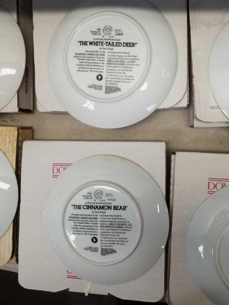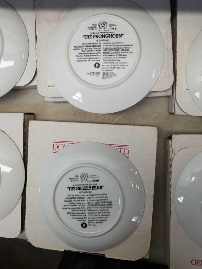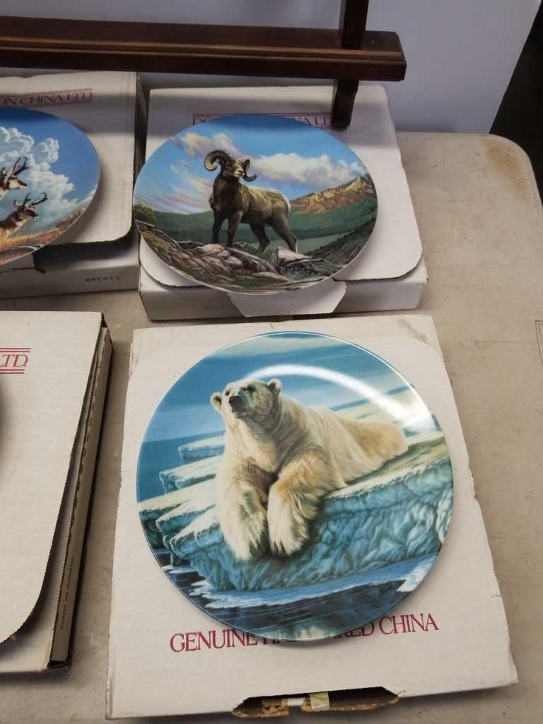 BRADFORD EXCHANGE WILD AND FREE: CANADA'S BIG GAME 8 COLLECTOR PLATE SET WITH STAND