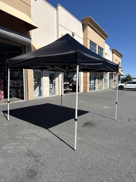 BRAND NEW 10X10FT COMMERCIAL EASY UP SHELTER, BLACK TOP, EASY UP AND DOWN, WITH CARRY BAG RETAIL $49