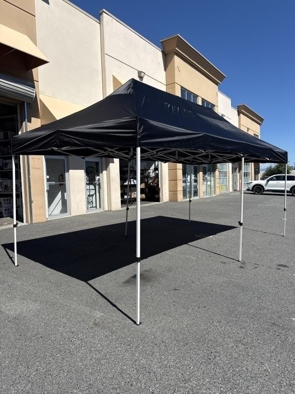 BRAND NEW 10X20FT COMMERCIAL EASY UP SHELTER, BLACK, EASY UP AND DOWN, WITH CARRY BAG RETAIL $799
