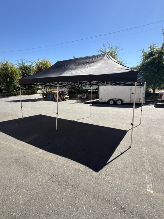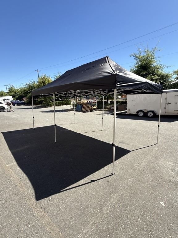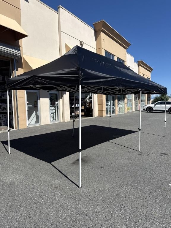 BRAND NEW 10X20FT COMMERCIAL EASY UP SHELTER, BLACK TOP, EASY UP AND DOWN, WITH CARRY BAG RETAIL $799