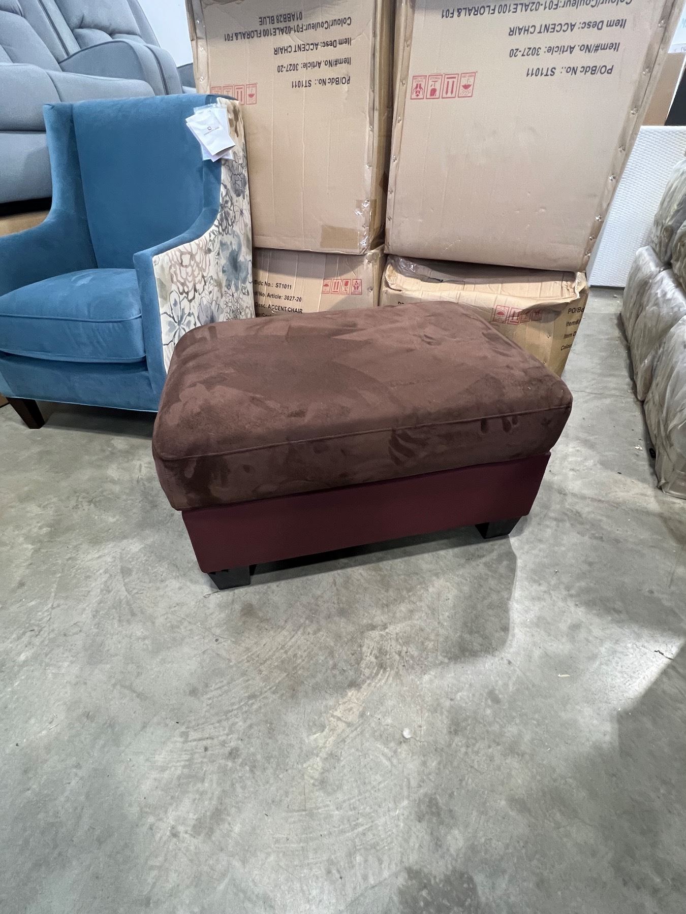 BRAND NEW 2 TONE BROWN MICROFIBER STORAGE OTTOMAN - RETAIL $249
