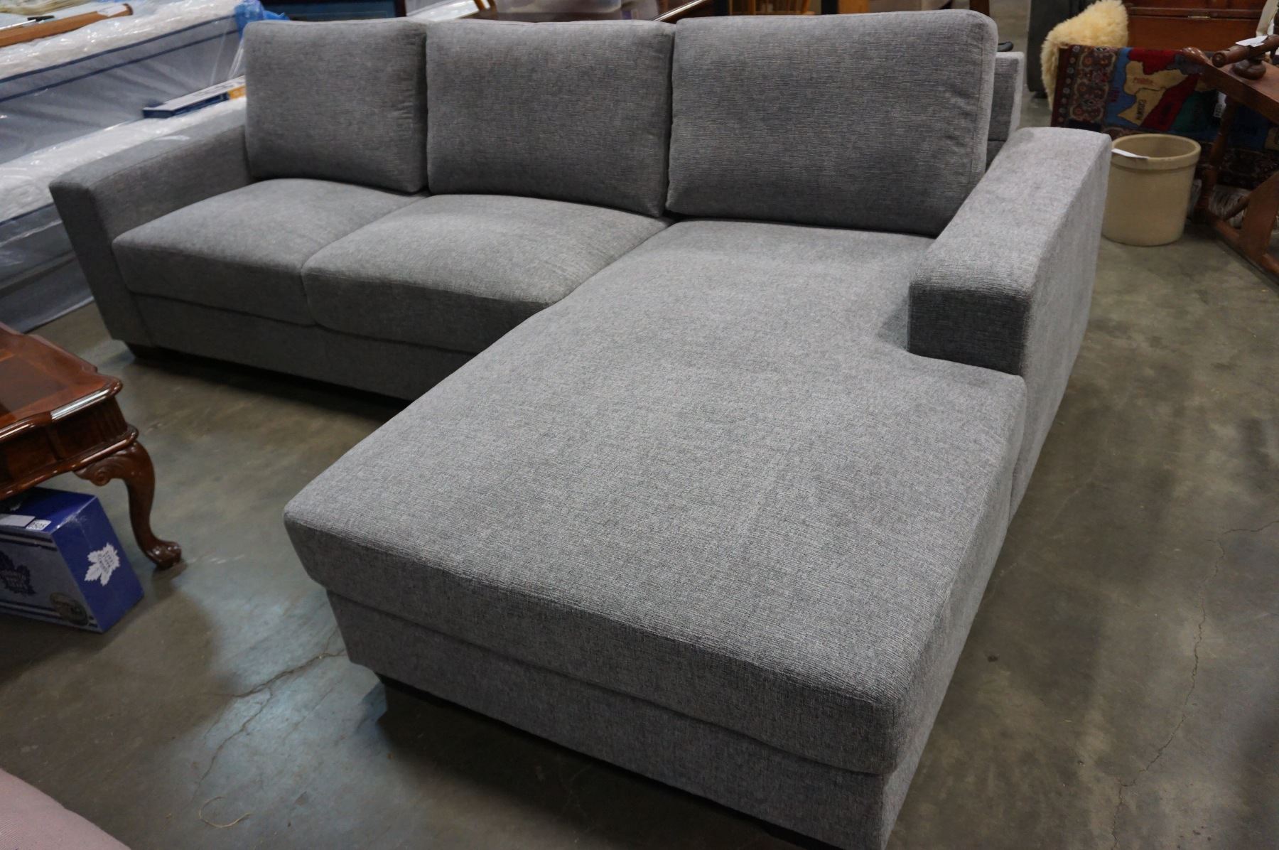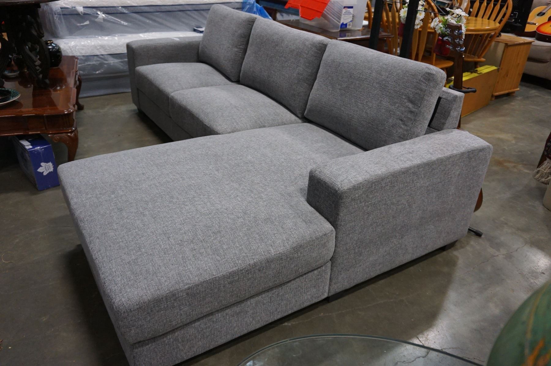 BRAND NEW 2PC GREY FABRIC RIGHT HAND SECTIONAL SOFA - RETAIL $1499