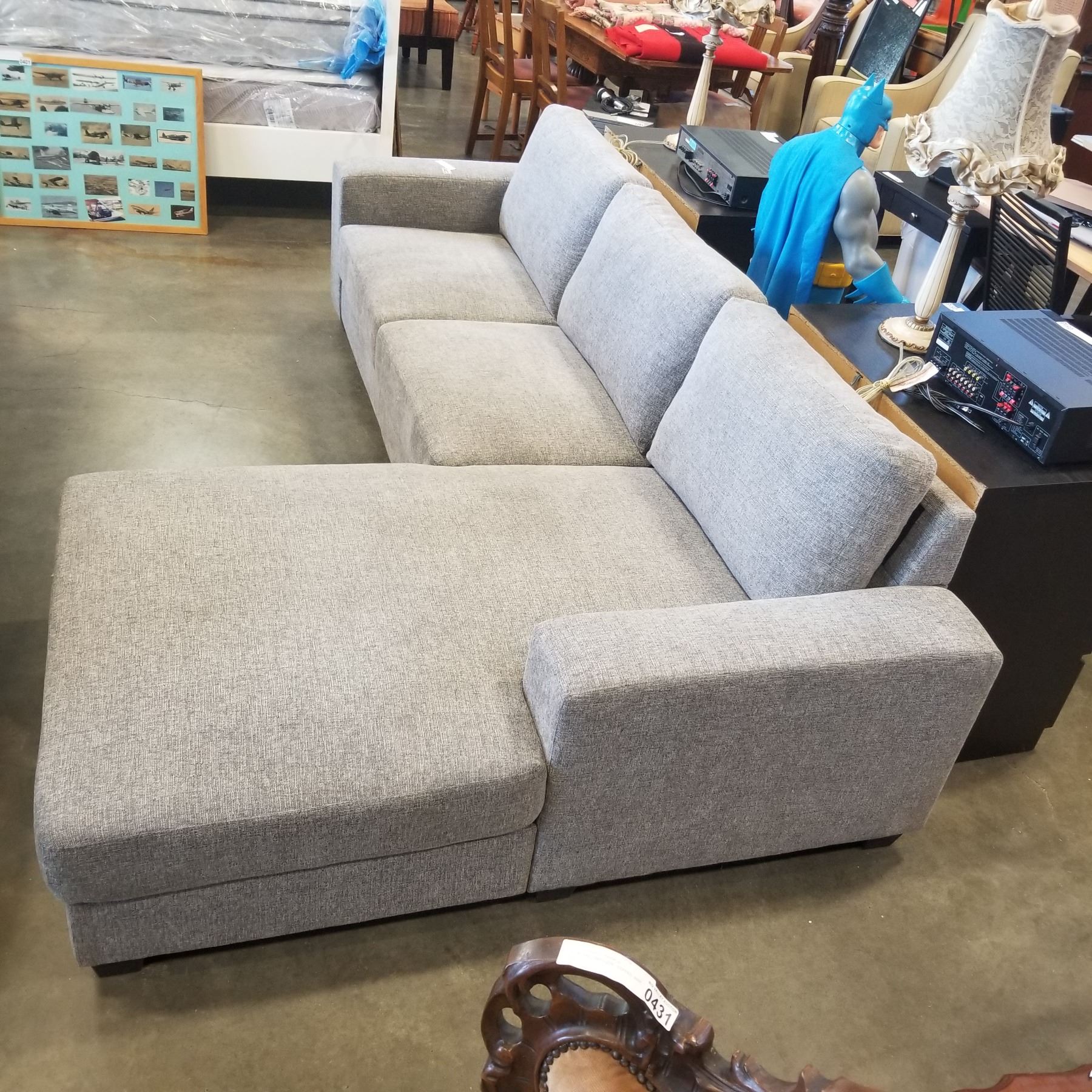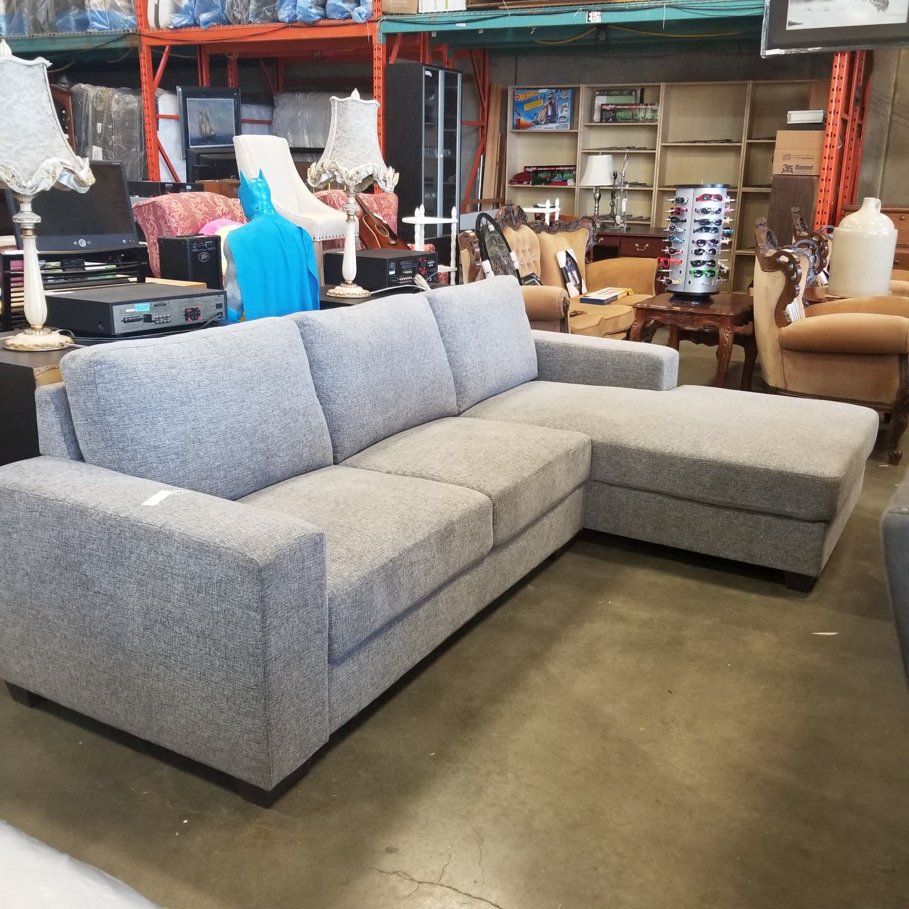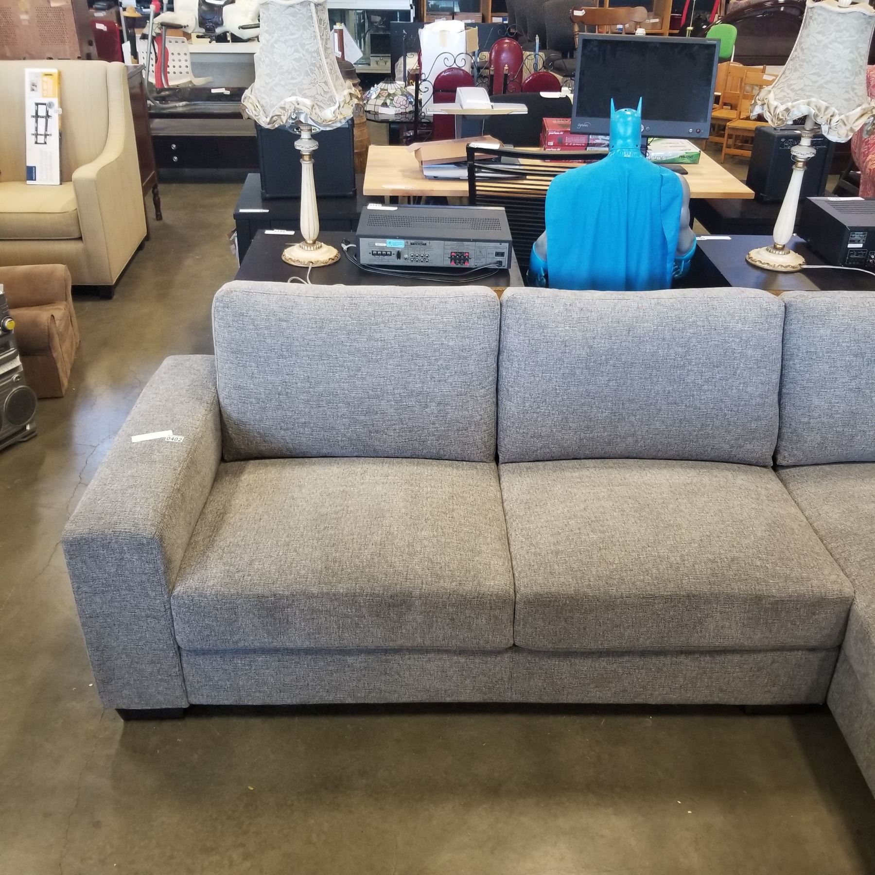 BRAND NEW 2PC GREY FABRIC RIGHT HAND SECTIONAL SOFA - RETAIL $1499