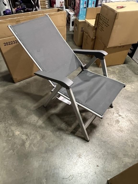 BRAND NEW ALUMINUM SLING FOLDING PATIO CHAIR, ADJUSTABLE, FOLDS FLAT, RETAIL $139