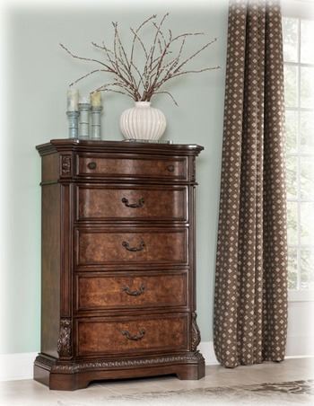 BRAND NEW ASHLEY SIGNATURE DARK FINISH CARVED 6 DRAWER CHEST OF DRAWERS, RETAIL $1899