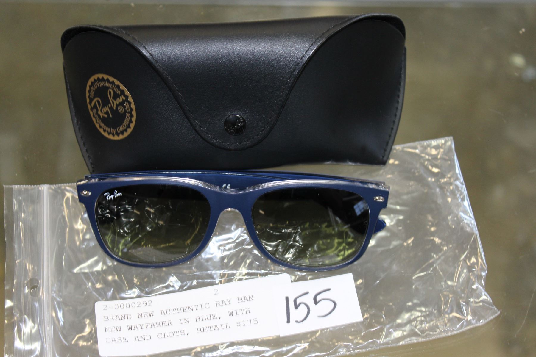 BRAND NEW AUTHENTIC RAY BAN NEW WAYFARER IN BLUE, WITH CASE AND CLOTH, RETAIL $175