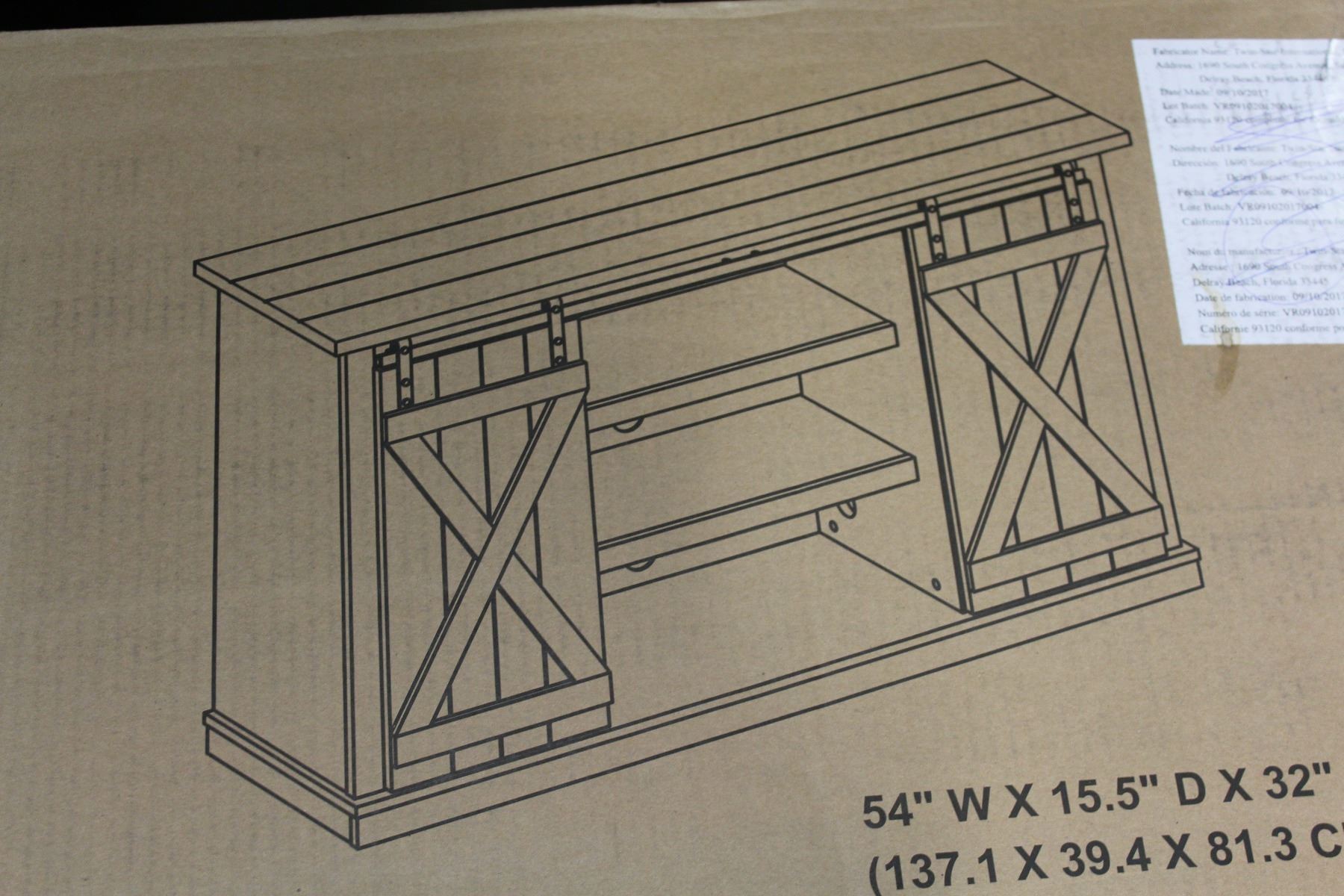 BRAND NEW BARN DOOR DRIFTWOOD TV STAND