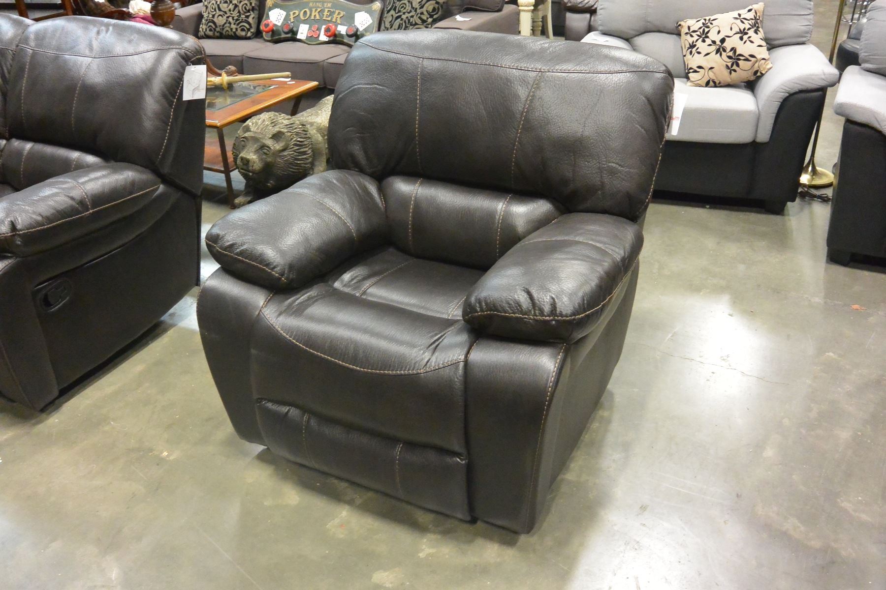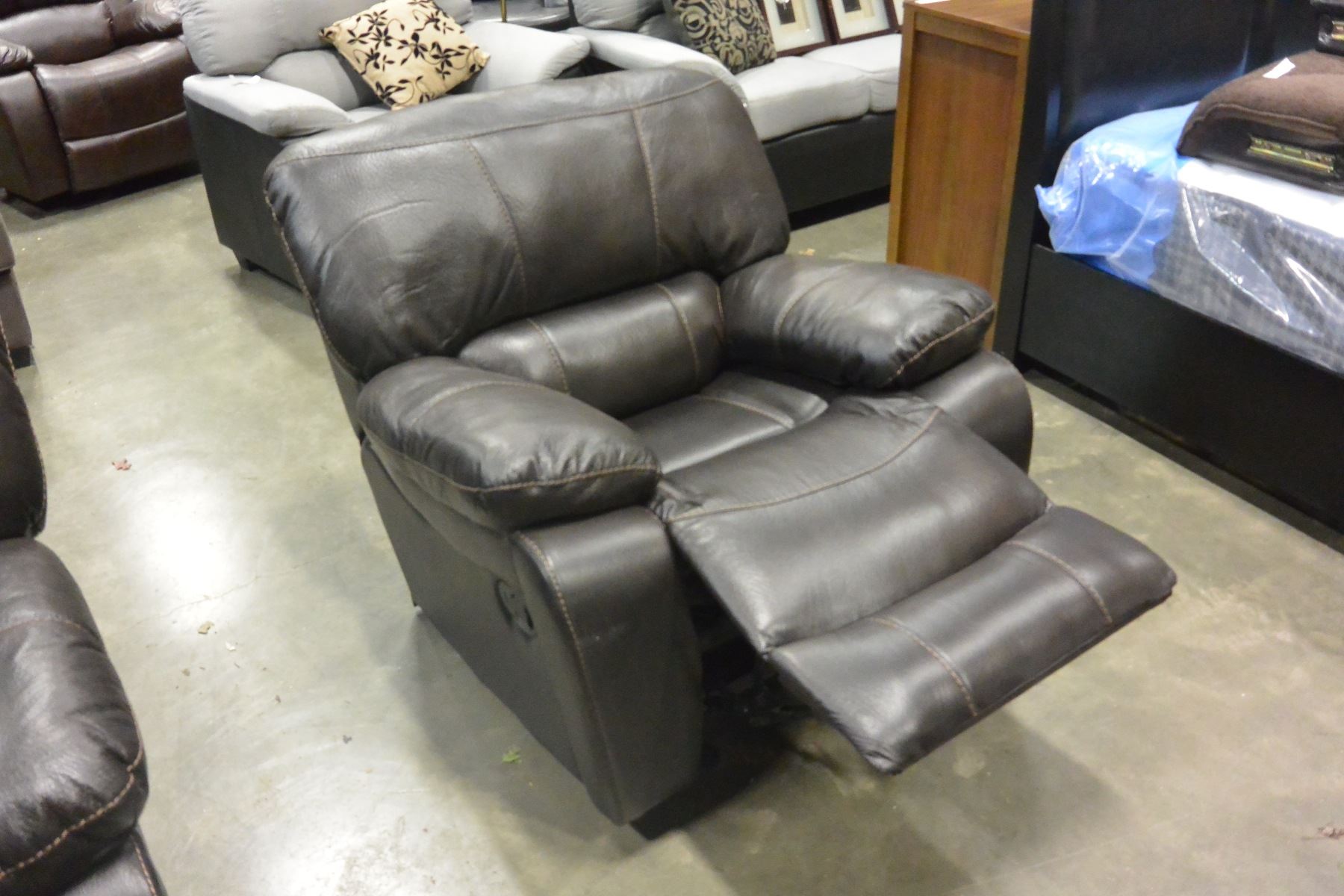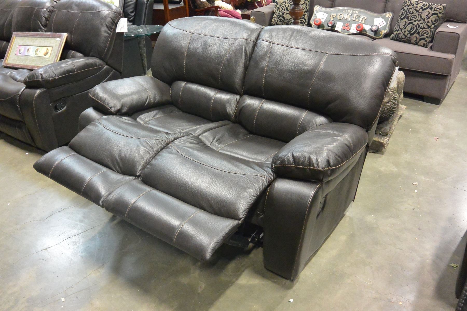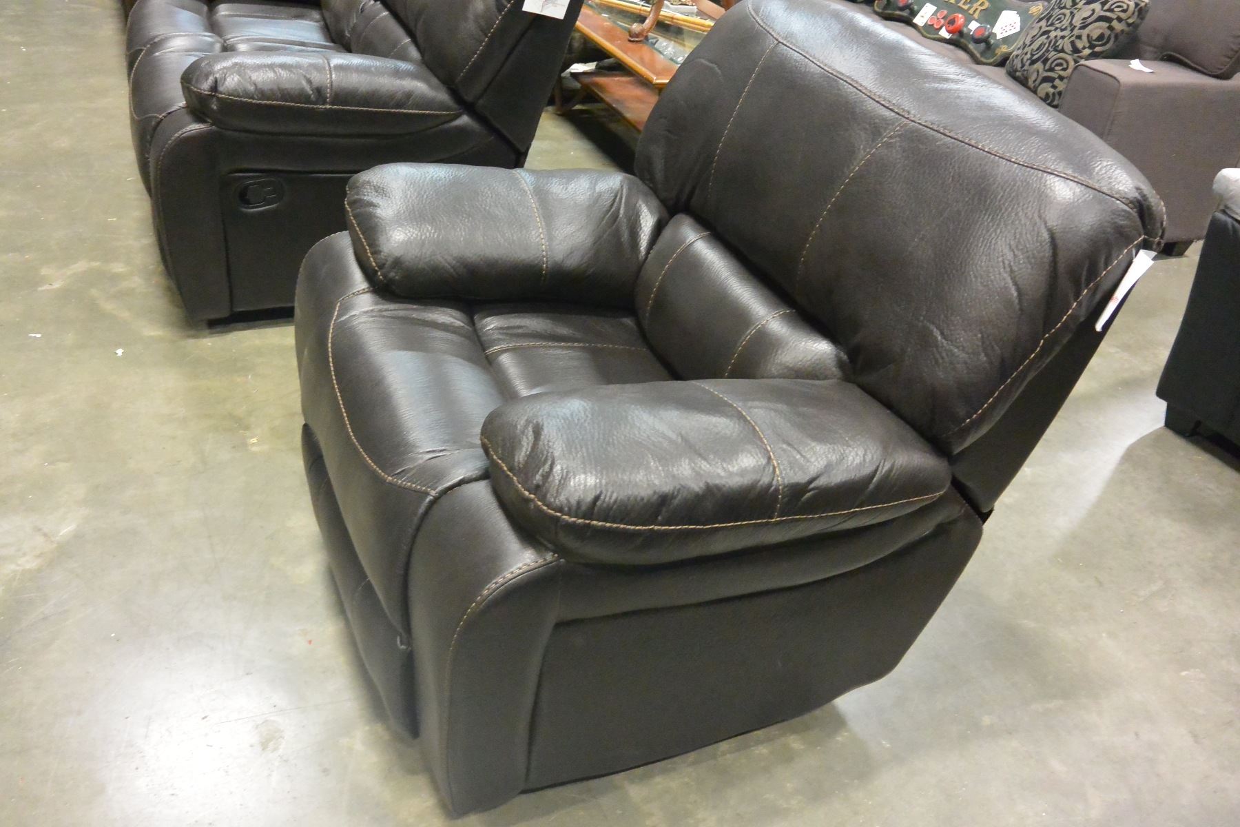 BRAND NEW BROWN PALOMINO FABRIC SOFA SET, WITH COUNTOURED MEMORY FOAM SEATS, WHITE BROWN STITCHING, AND DROP DOWN SOFA TABLE, ROCKING RECLINER RETAIL $5399