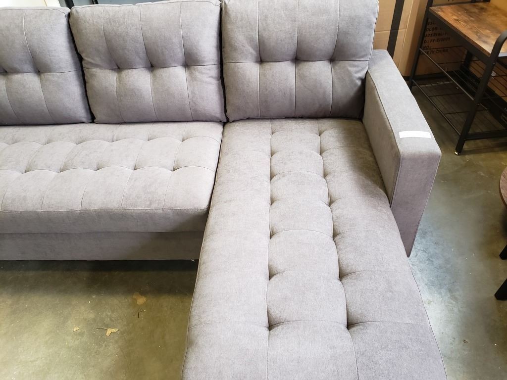 BRAND NEW CHARCOAL TUFTED REVERSIBLE SECTIONAL SOFA - RETAIL $899, NEW IN BOX